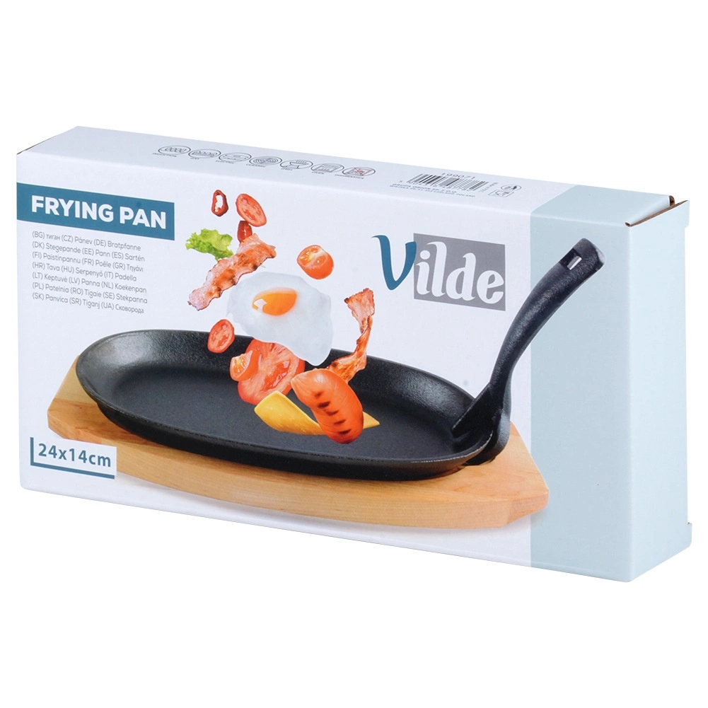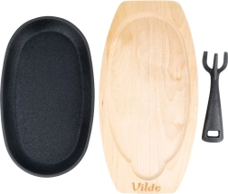 Öntöttvas tálalóserpenyő fa alátéttel CAST LINE 24 × 14 cm