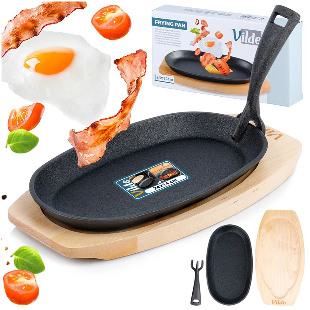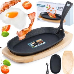 A csomag része egy praktikus fa alátét, amely megvédi az asztalt a hőtől, és lehetővé teszi az ételek látványos és biztonságos tálalását közvetlenül a serpenyőből. A tartós öntöttvas kivitel hosszú élettartamú – megfelelő ápolással (mossa el, alaposan szárítsa meg és vékonyan olajozza be) éveken át szolgálni fog.