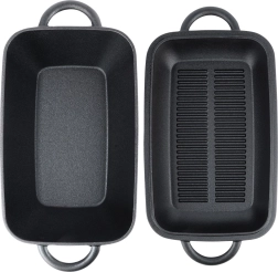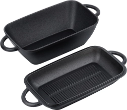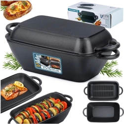 Ez a praktikus öntöttvas tepsi két edényt kínál: egy 3,5 l-es mély testet és egy belső grillbordázattal ellátott fedőt, amely 1,5 l-es serpenyőként használható. Az egyenletes hőeloszlásnak és kiváló hőtárolásnak köszönhetően ideális szaftos sütéshez, lassú pároláshoz és ropogós grillezéshez.