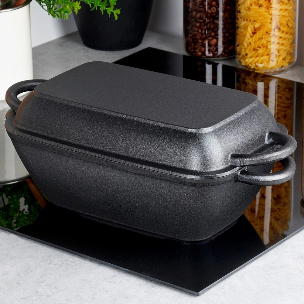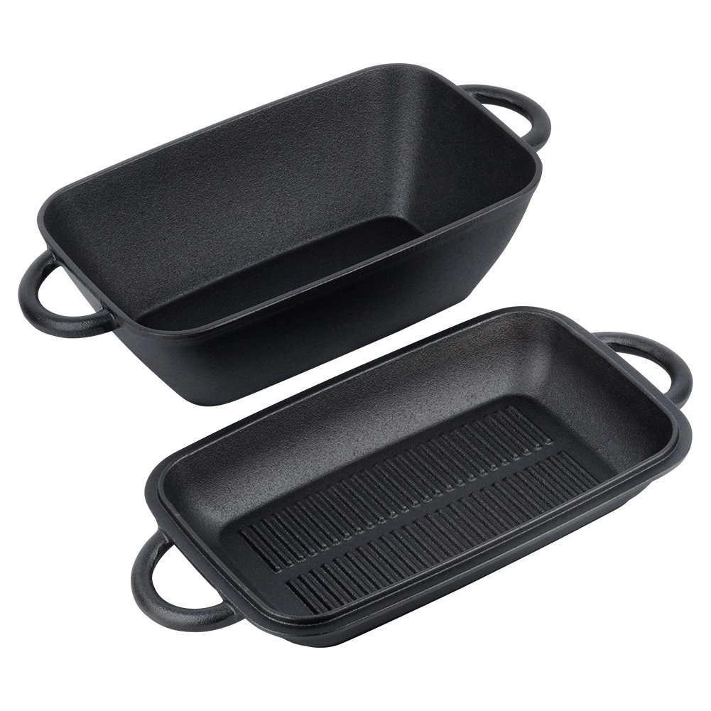 Univerzális 2 az 1-ben öntöttvas tepsi fedővel, amely önálló grillserpenyőként is szolgál. A masszív öntöttvas kiválóan vezeti és hosszan tartja a hőt, így ideális sütéshez, pároláshoz és gratináláshoz húsokhoz, halakhoz és zöldségekhez. Minden tűzhelytípushoz használható, beleértve az indukciót, sütőben és nyílt lángon is.
