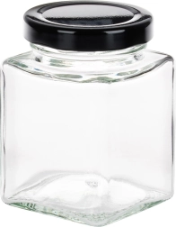 A tiszta üveg lehetővé teszi a tartalom azonnali ellenőrzését, a fekete fém, menetes kupakok védik a nedvességtől és megőrzik az aromát.