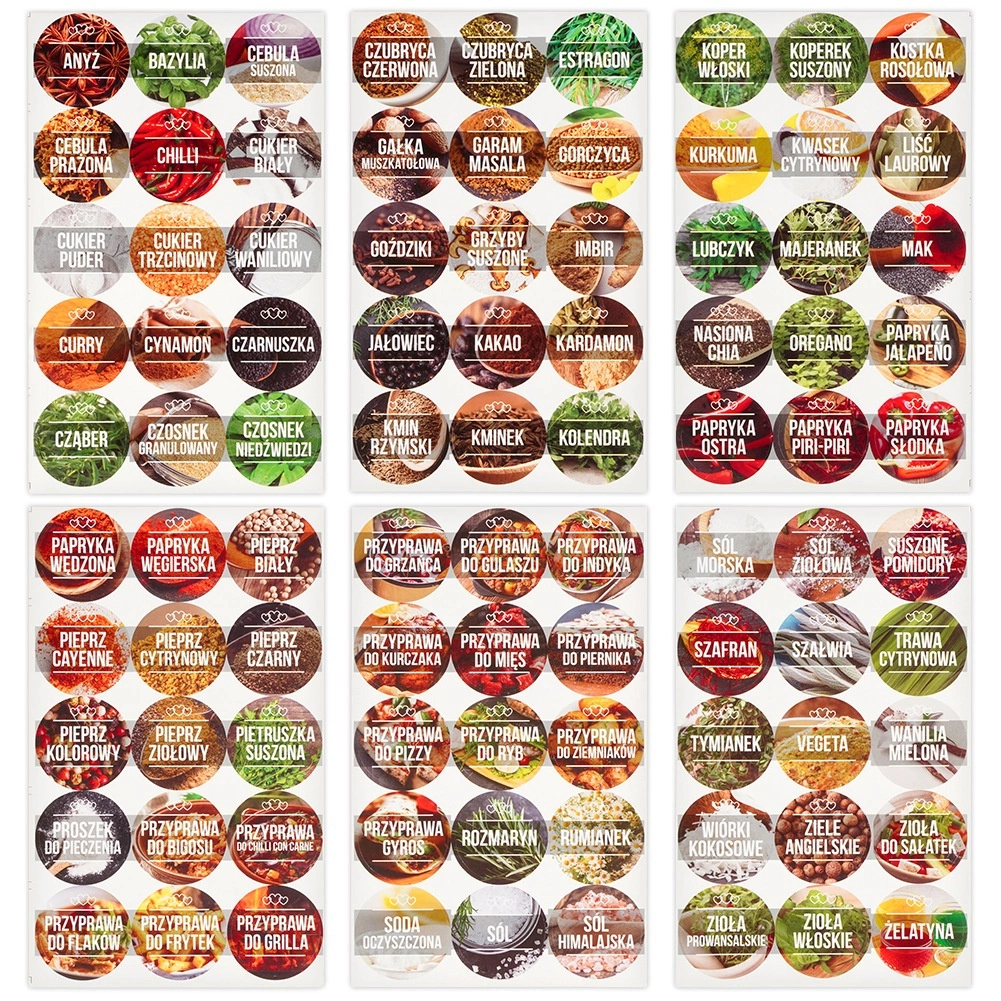 A 90 öntapadós címke a legnépszerűbb fűszerek neveivel professzionális megjelenést és gyors hozzávaló-azonosítást biztosít főzés közben.