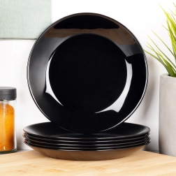 Az opál üvegből készült tányérok a mindennapi használatra tervezett tartósságot elegáns, fényes felülettel ötvözik, amely a porcelánt idézi.