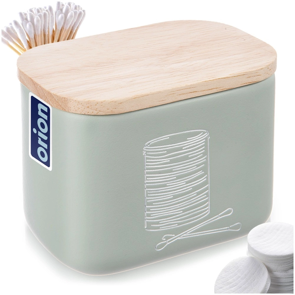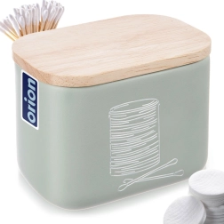 Stílusos és kompakt fürdőszobai rendszerező fültisztító pálcikákhoz és kozmetikai vattakorongokhoz bambusz fedéllel. Minőségi szintetikus kőből, kerámiahatással, modern mentazöld színben. Helytakarékos, védi a tartalmat a portól és könnyen utántölthető. Eredeti ORION termék.
