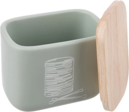 A természetes bambusz fedél eleganciát kölcsönöz, és tisztán, pormentesen tartja a pálcikákat és a vattakorongokat.