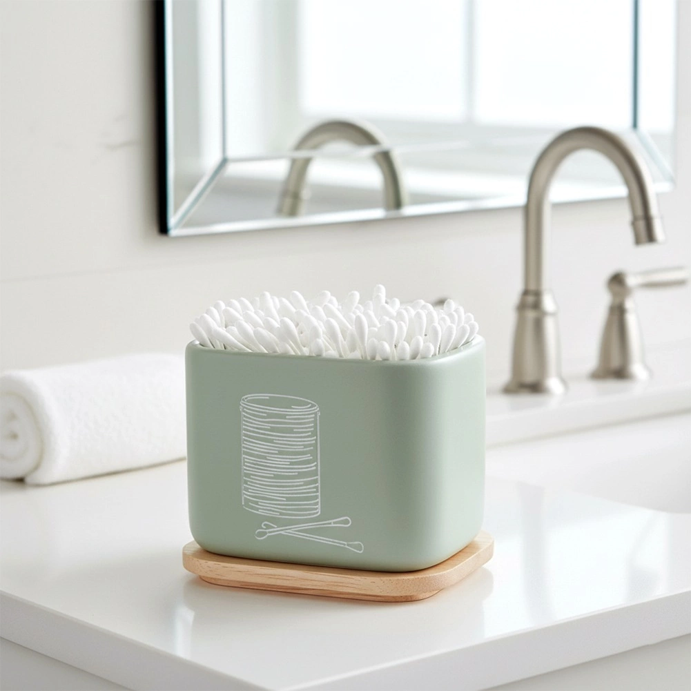 Zöld doboz fültisztító pálcikákhoz és kozmetikai vattakorongokhoz GREENISH