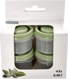 Praktikus, 4 darabos, 50 ml-es kis pohárkakészlet átlátszó testtel és zöld fedővel, ideális szószokhoz, mártogatósokhoz, fűszerekhez és gyógynövényekhez. A szorosan záródó fedeleknek köszönhetően a tartalom friss és szagmentes marad, fagyasztóba, hűtőbe és mikrohullámú sütőbe is alkalmas (fedő nélkül), és mosogatógépben mosható.