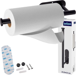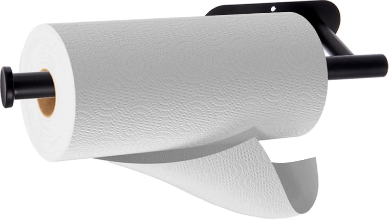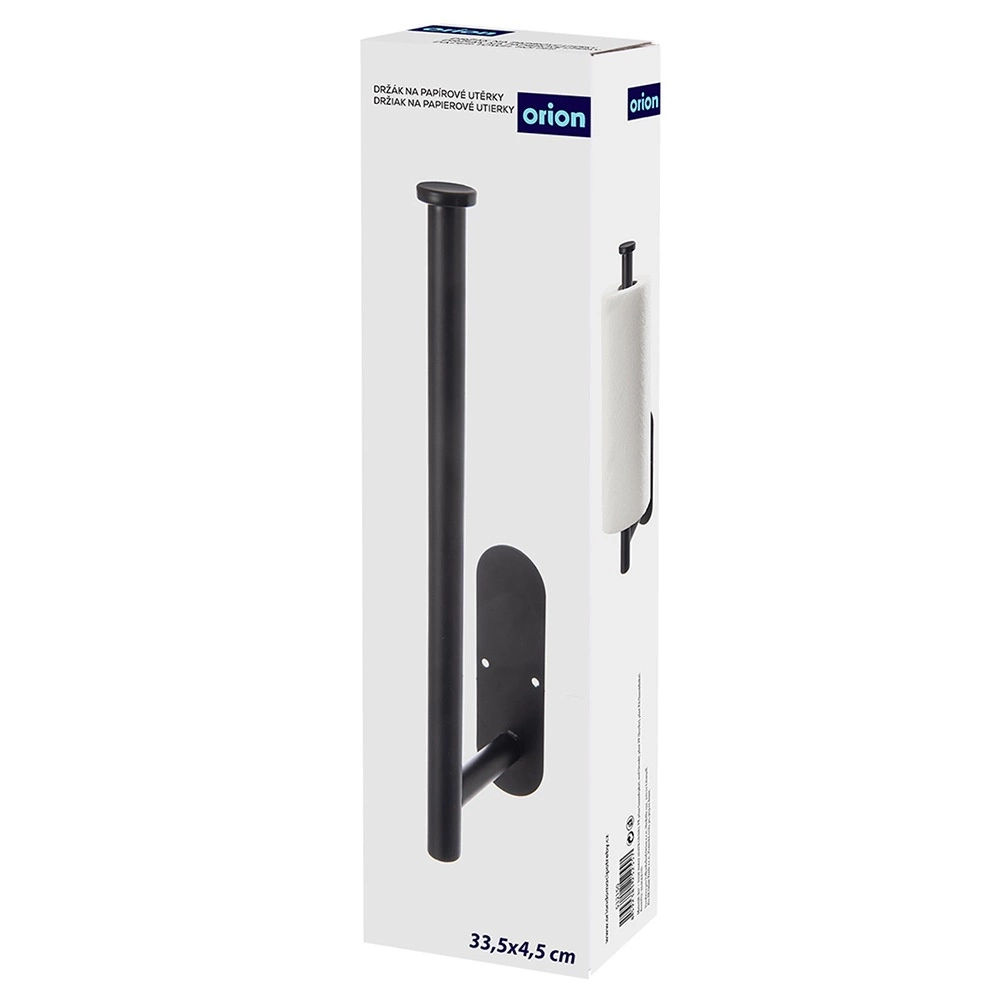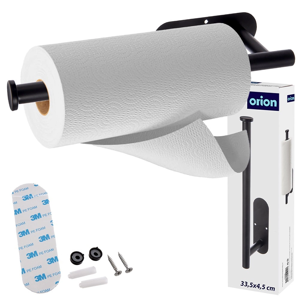 Praktikus, fekete, strapabíró fémből készült fali papírtörlő-tartó, amely helyet takarít meg, és lehetővé teszi az egykezes, gyors és kényelmes letépést. A kétféle rögzítési lehetőségnek köszönhetően (3M ragasztó fúrás nélkül vagy csavarok) konyhába, fürdőbe és irodába is ideális. Az univerzális 33,5 × 9,2 × 4,5 cm-es méret kompatibilis a szabványos tekercsekkel, a stabil kialakítás pedig hosszú élettartamot biztosít.