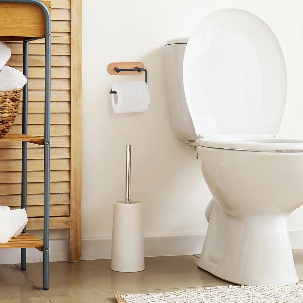 Az elegáns WC-papírtartó letisztult dizájnt és praktikusságot visz minden fürdőszobába. A fekete fém kar és a bambusz hátlap remekül illik a modern enteriőrökhöz, miközben tartósságot és hosszú élettartamot nyújt. Átgondolt formájának köszönhetően a guriga cseréje gyors és kényelmes.