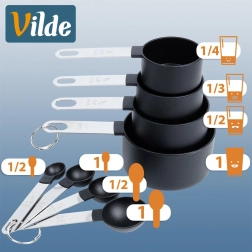 Ez az univerzális mérőkészlet négy mérőcsészét és négy mérőkanalat kombinál a száraz és folyékony hozzávalók gyors és pontos méréséhez. Minden darab jól olvasható űrmérték-jelöléssel rendelkezik (csésze, evőkanál, teáskanál), így nem téved el a receptek követésekor.