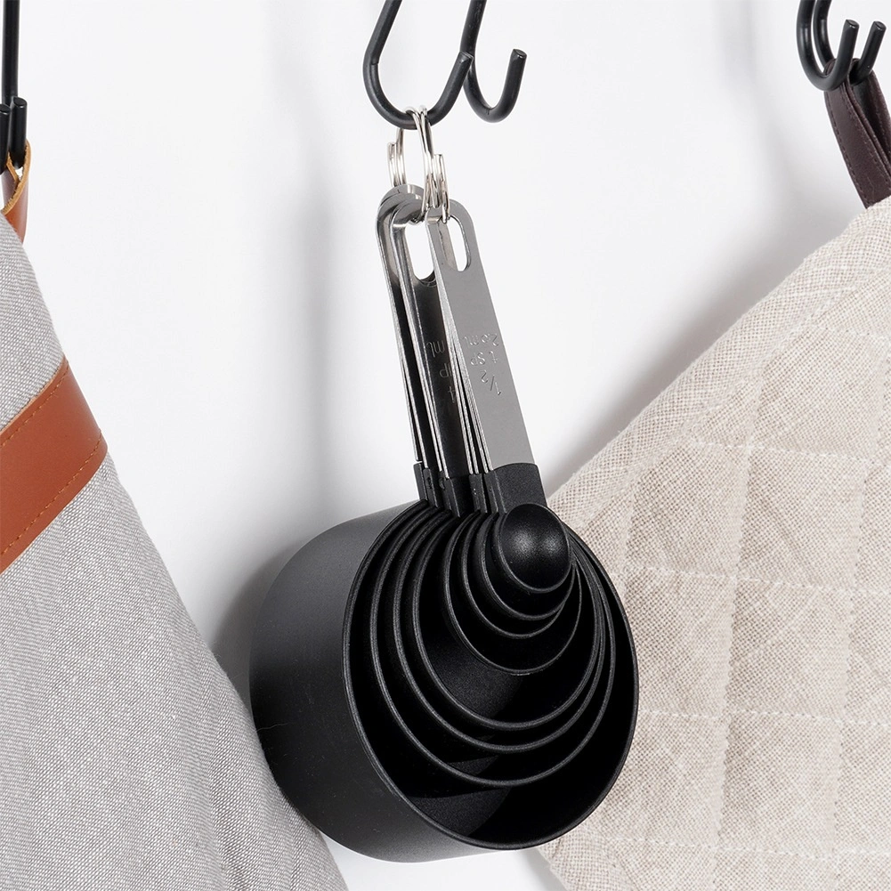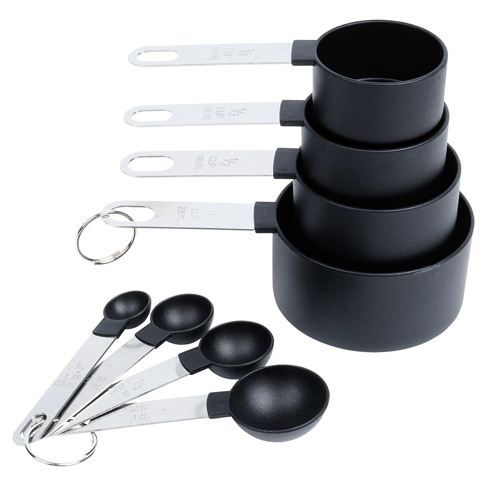 A mérők strapabíró rozsdamentes acél nyelekkel és elegáns fekete színű, minőségi műanyag tálkákkal készülnek. Mosogatógépben moshatók. Az összes elem fém gyűrűvel kapcsolódik, ami megkönnyíti a felakasztást és a kompakt fiókos tárolást.