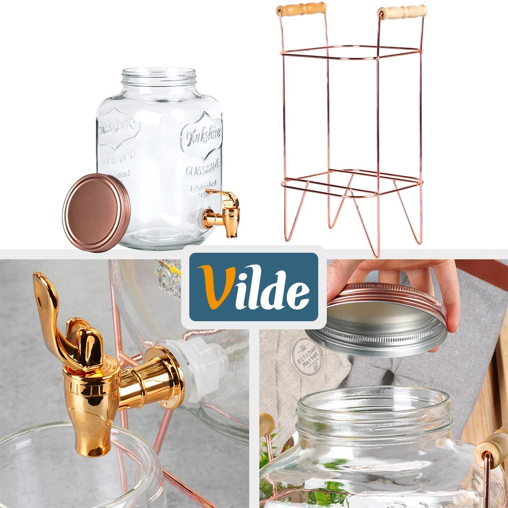 A rózsaarany színű fém állvány és fedél fa fogantyúkkal stílust kölcsönöz az italok felszolgálásának, és megkönnyíti a kezelést.