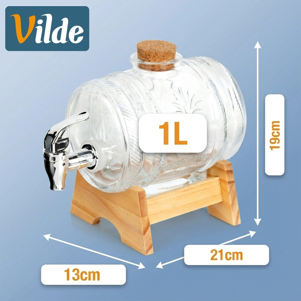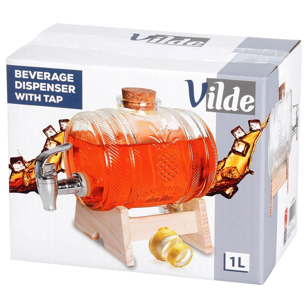Az 1 literes űrtartalom ideális limonádéhoz, gyümölcsléhez, jeges teához, gyümölcsös vízhez, valamint házi borokhoz és likőrökhöz. A fa állvány kényelmes magasságot ad a poharakba történő csapoláshoz, a tömítéssel ellátott fém csap pedig egyenletes, csöpögésmentes töltést biztosít. A termék forró italokhoz nem alkalmas.