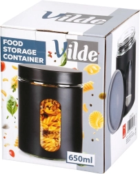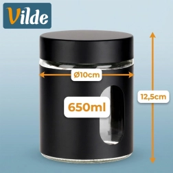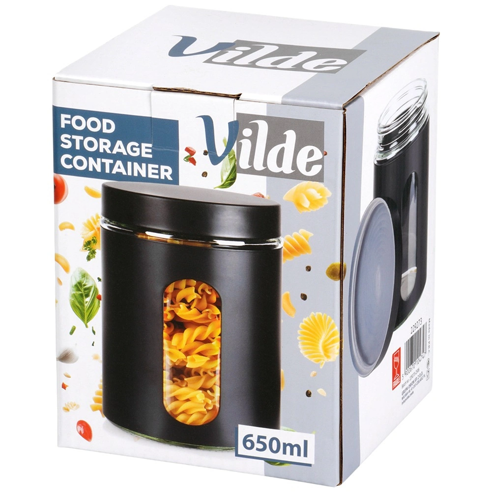 A 10 × 12,5 cm méret és a 650 ml űrtartalom ideális kapacitást kínál a mindennapi használathoz. Az ellenálló üveg könnyen tisztítható, a fekete köpeny pedig stílust és jobb fogást ad. Az edény segít rendezetté tenni a konyhát, és az élelmiszereket tovább frissen és illatosan tartja.