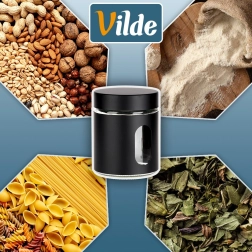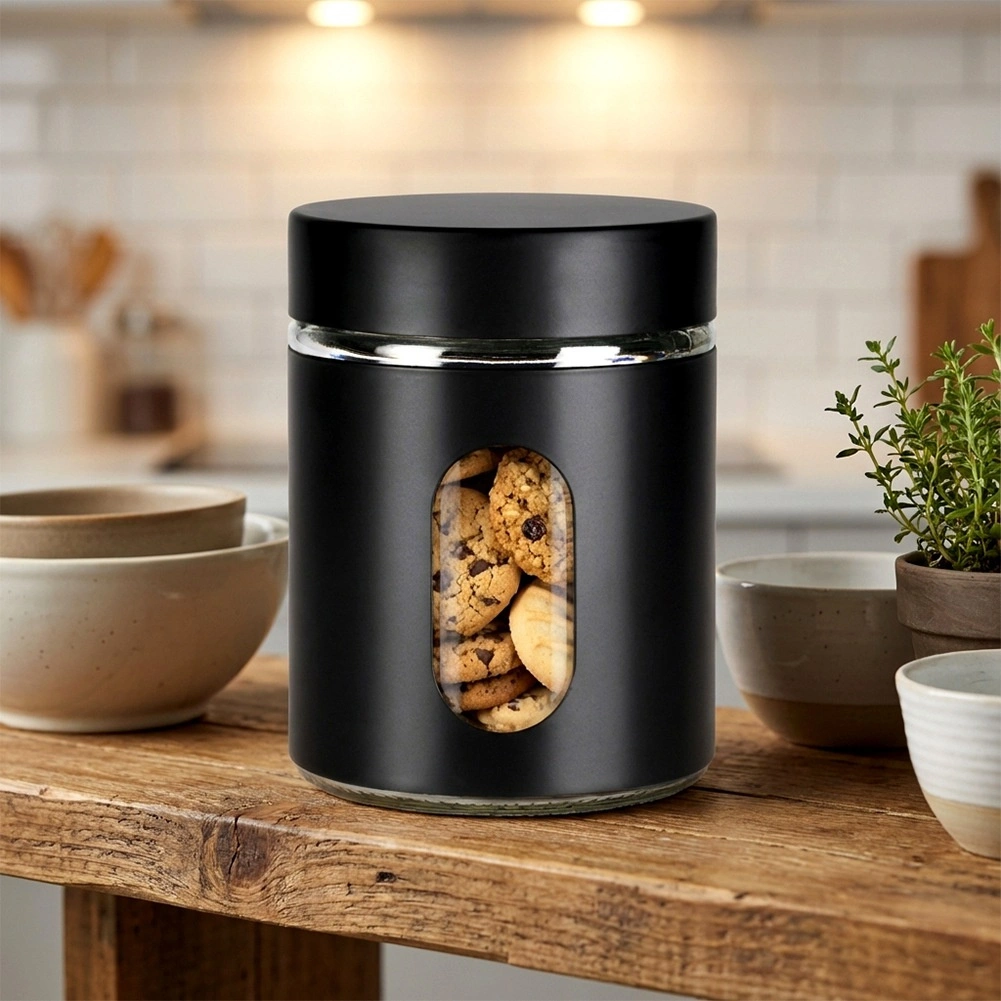 A tiszta üveg és a fekete védőborítás kombinációja modern megjelenést, jobb fogást és a szórt élelmiszerek biztonságos tárolását biztosítja.
