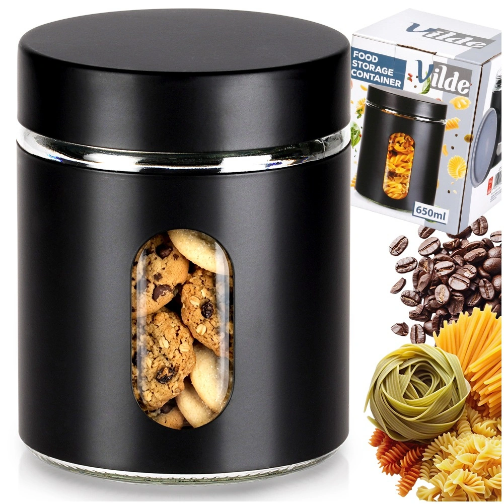 Az elegáns élelmiszertartó az áttetsző üveget fekete védőköpennyel és csavaros fedéllel ötvözi a megbízható tömítettség érdekében. Tökéletes kávé, cukor, tészta, diófélék, aszalt gyümölcs vagy szárított gomba számára. A átlátszó ablaknak köszönhetően mindig látható a mennyiség és a tartalom anélkül, hogy ki kellene nyitni az edényt.