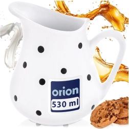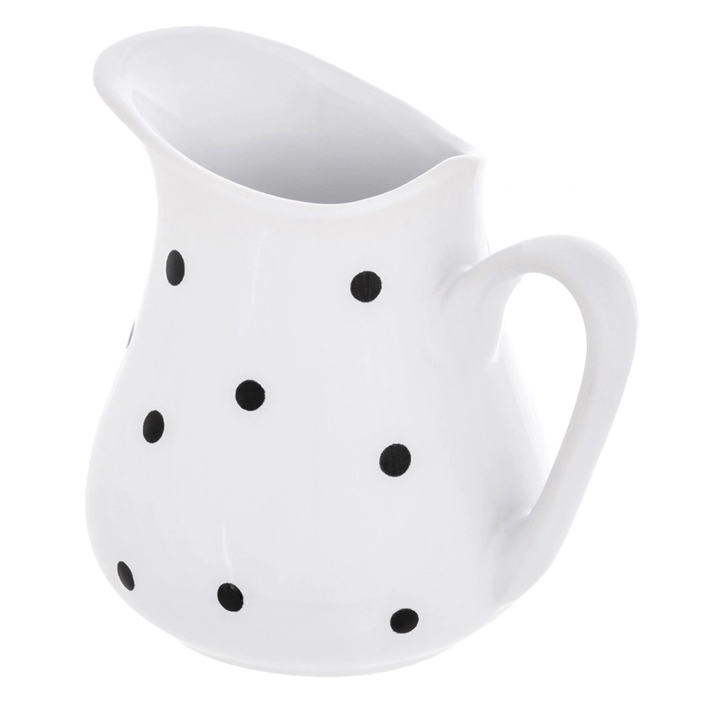 Stílusos, 480 ml-es fehér kerámia kancsó fekete pöttyökkel, ideális a mindennapi tálaláshoz. Sokoldalúan használható vízhez, limonádéhoz, borhoz, tejhez, tejszínhez vagy szószokhoz, ergonomikus füllel és széles kiöntővel a pontos, fröccsenésmentes öntéshez. Mosogatógépben és mikrohullámú sütőben is használható, dekoratív kialakításának köszönhetően minden asztalon remekül mutat.