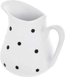 Praktikus és elegáns, minőségi kerámiából készült kancsó, amely a funkcionalitást és az esztétikumot ötvözi a mindennapi használathoz otthon és vendéglátásban. A fehér felület fekete pöttyökkel időtálló hatást kelt, és könnyen kombinálható más edényekkel. A 480 ml-es űrtartalom ideális italok és kisebb mennyiségű szószok tálalásához.