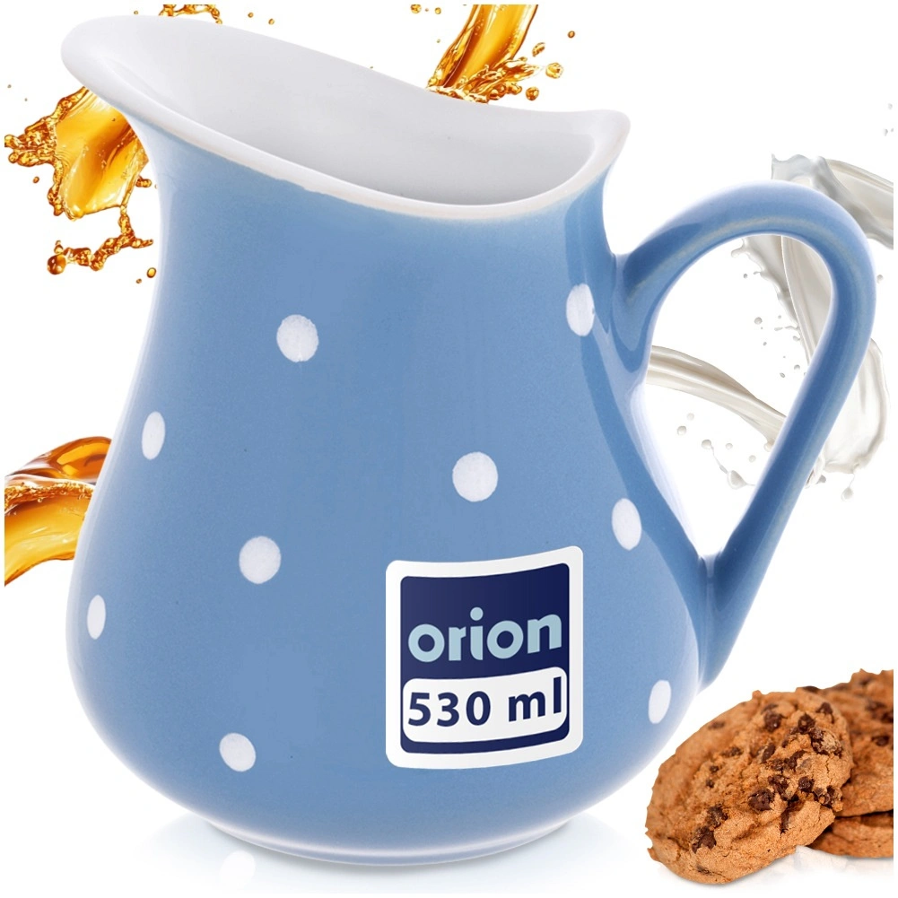 Stílusos, 480 ml űrtartalmú kerámia kancsó, ideális mindennapi italok és szószok tálalásához. Ergonomikus fogantyúval, széles, pontos kiöntést biztosító csőrrel és strapabíró kerámia kivitelben készül, kék színben fehér pöttyökkel. Mosogatógépben és mikrohullámú sütőben használható, így a tisztítása egyszerű.