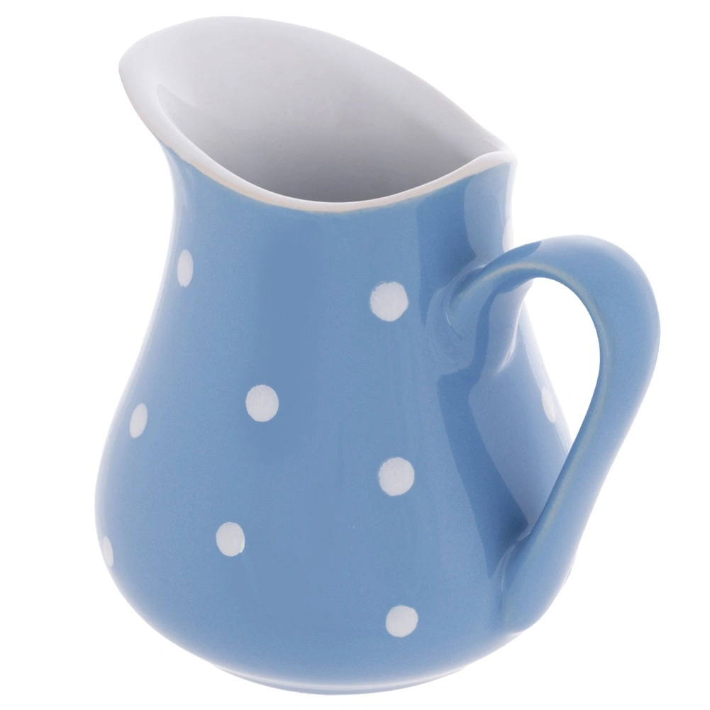 Sokoldalú kerámia kancsó vízhez, limonádéhoz, borhoz, tejhez és tejszínhez, valamint szószok tálalásához. Kompakt méreteinek köszönhetően tökéletes reggelikhez, ötórai teához és otthoni ünnepségekhez. A kék máz fehér pöttyökkel játékos és elegáns akcentust ad a terített asztalnak.