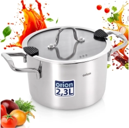 Praktikus, 2,3 l űrtartalmú rozsdamentes acél lábas üvegfedővel, ideális mindennapi főzéshez, pároláshoz és sütéshez. Rendelkezik többrétegű aljjal az egyenletes hőelosztásért, öntőcsőrrel és szilikonos elemekkel ellátott fedővel a könnyű leszűréshez, továbbá minden típusú főzőlapon – indukción is – használható, valamint sütőben 200 °C-ig. Könnyen tisztítható, mosogatógépben mosható.
