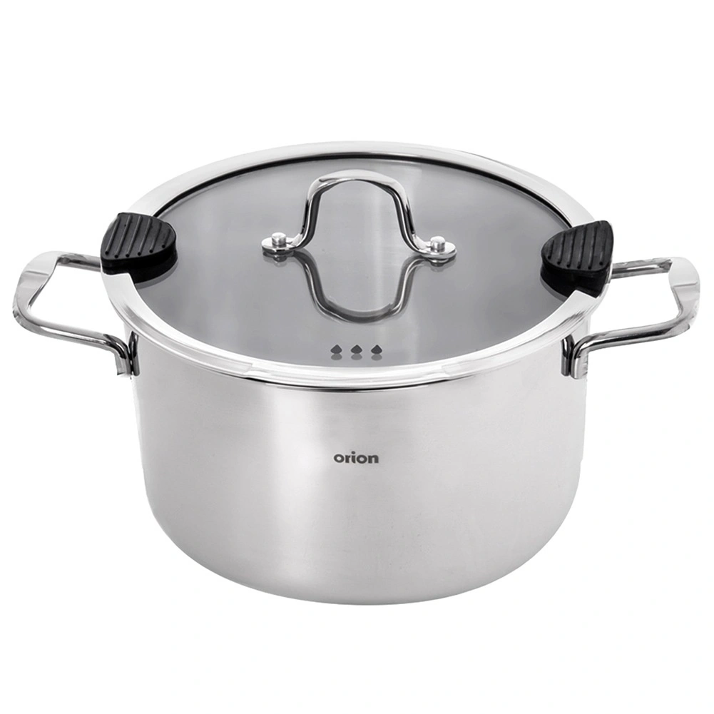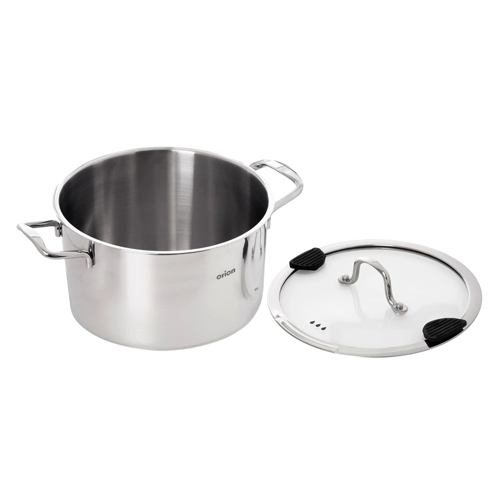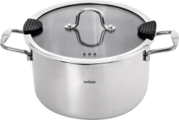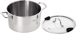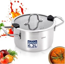 Nagy, univerzális lábas minőségi rozsdamentes acélból, 24 cm átmérővel és 6,2 l űrtartalommal a mindennapi főzéshez. Edzett üveg fedővel, praktikus kiöntőnyílással és szilikon elemekkel a biztonságos vízleöntéshez. A többrétegű, alumínium maggal ellátott talp egyenletesen oszlatja el a hőt, alkalmas gáz-, elektromos, üvegkerámia és indukciós főzőlapra, valamint sütőben 200 °C-ig is használható. Tartós 304-es rozsdamentes acél, könnyű karbantartás és mosogatógépben mosható.