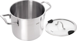 Fedezze fel a megbízható fazekat levesekhez, pörköltekhez és egytálételekhez. A masszív 304-es rozsdamentes acél könnyen tisztítható, az üvegfedő lehetővé teszi a főzés ellenőrzését, a szilikon elemekkel ellátott praktikus kiöntő pedig biztonságossá teszi a víz leöntését. A többrétegű, alumínium maggal ellátott talp egyenletes hőelosztást és energiatakarékos főzést biztosít.