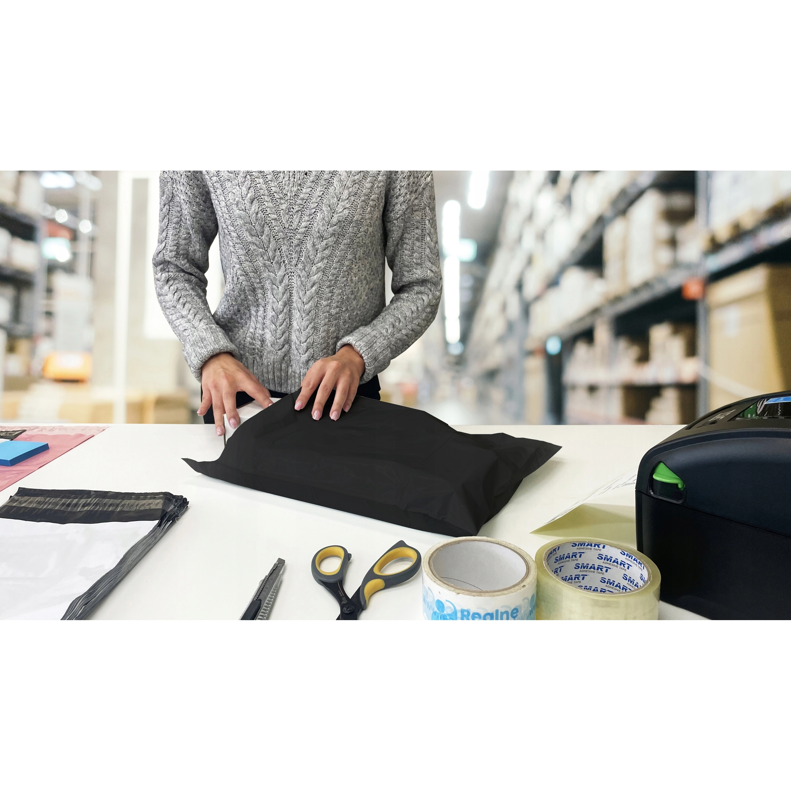 Ezek a fekete, B5 méretű (190 × 250 mm) műanyag postai borítékok ideálisak textíliák, kiegészítők és kisebb termékek gyors és biztonságos feladásához. A peel-and-seal öntapadó zárócsík megbízható zárást biztosít ragasztószalag nélkül, ami időt és költséget takarít meg a feladás során.