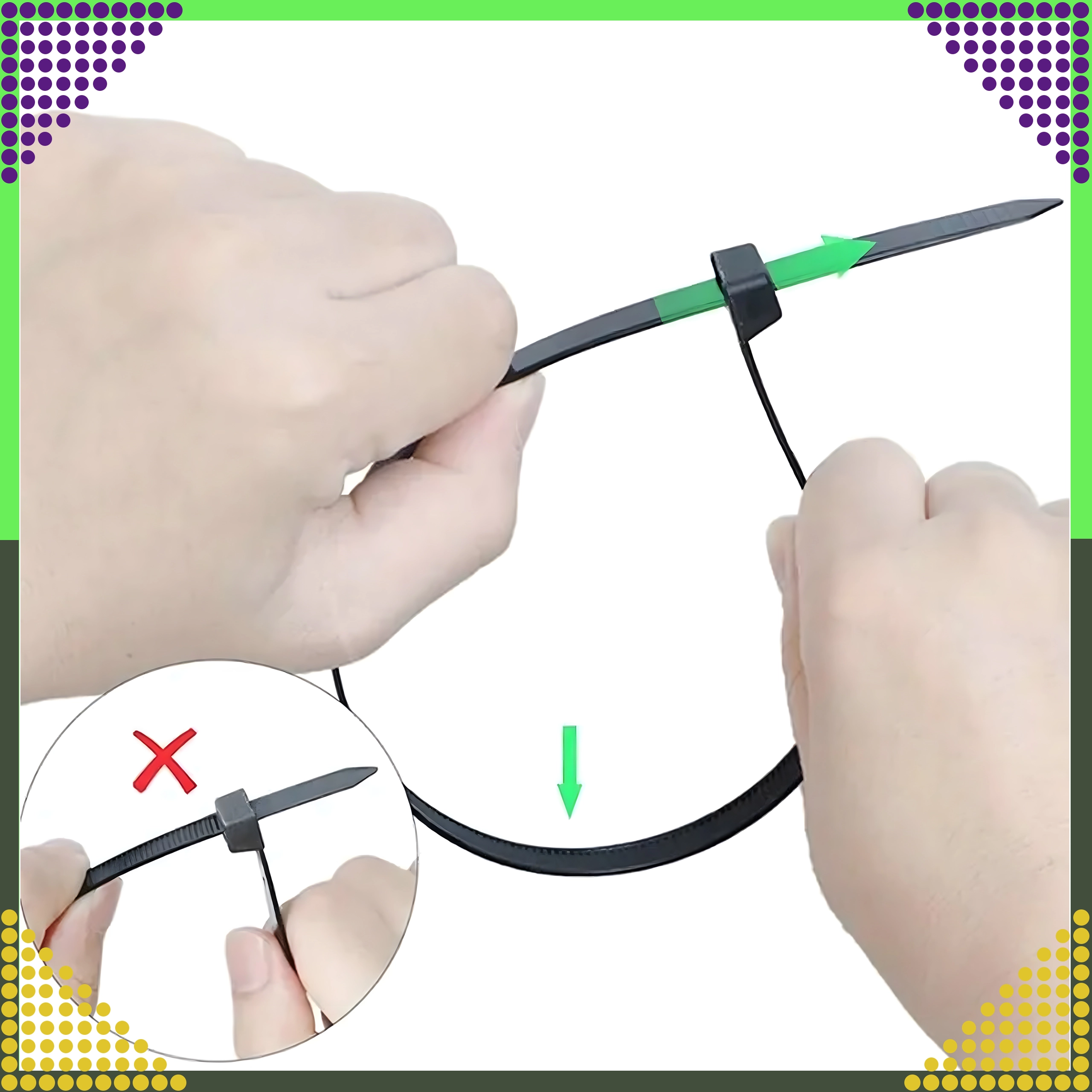 Ideális tápkábelek és adatkábelek kötegeléséhez és vezetéséhez. Az önzáró fej megakadályozza a kilazulást, és segít az átlátható telepítésben.