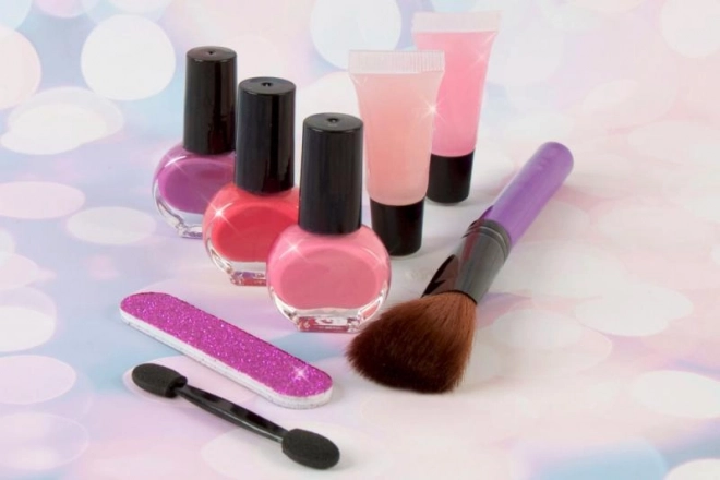 Fedezze fel az elegáns bőröndben található kozmetikai készletet, amely tele van sminkekkel, körömlakkokkal és további kiegészítőkkel a körmök és ajkak tökéletes ápolásához, ideális 8 éves kortól.