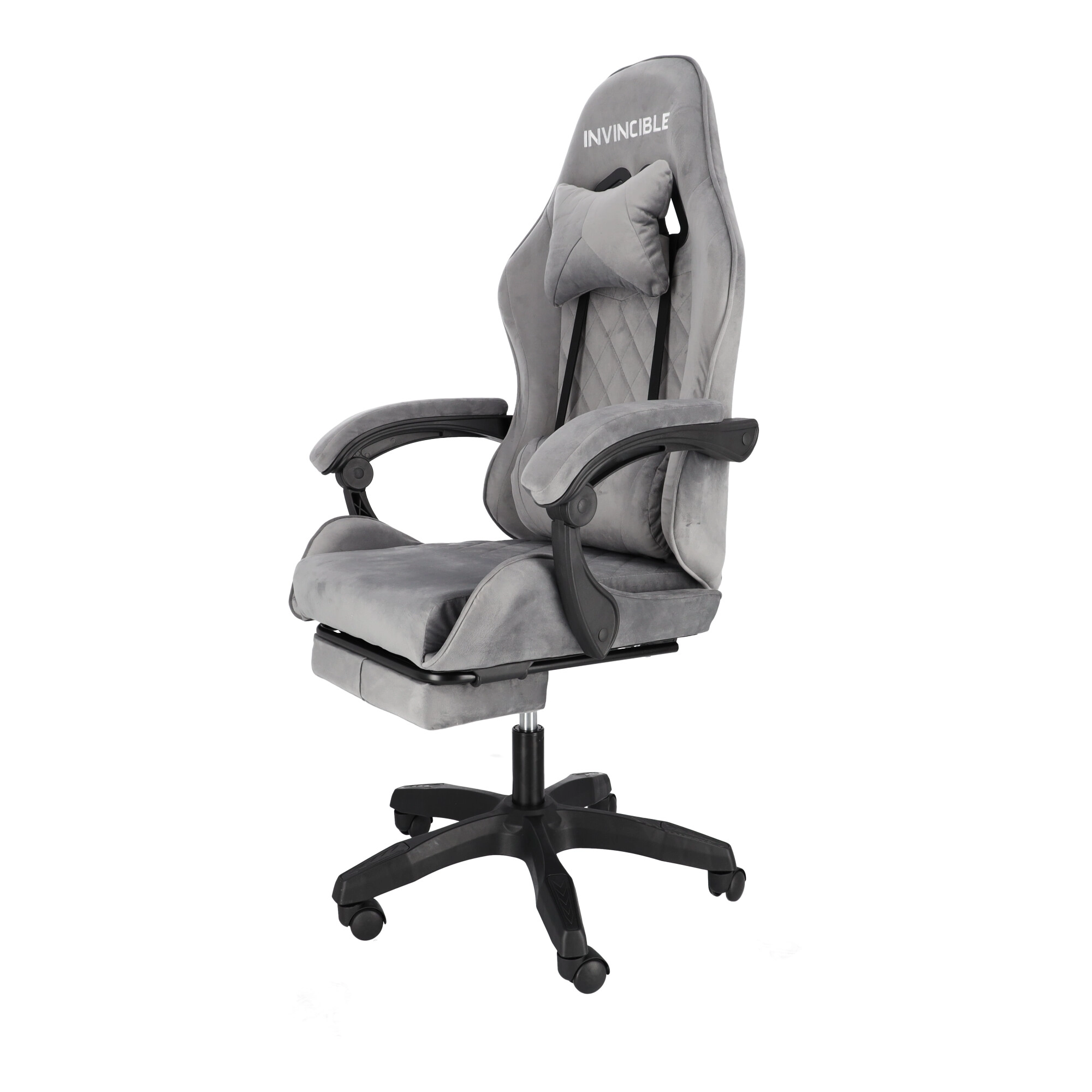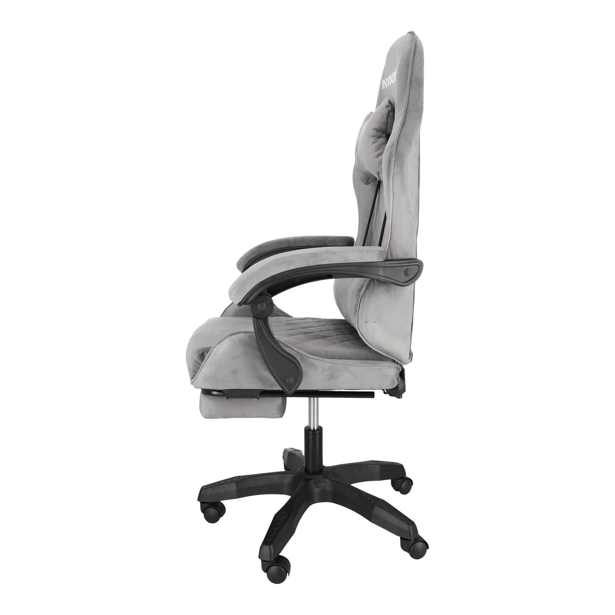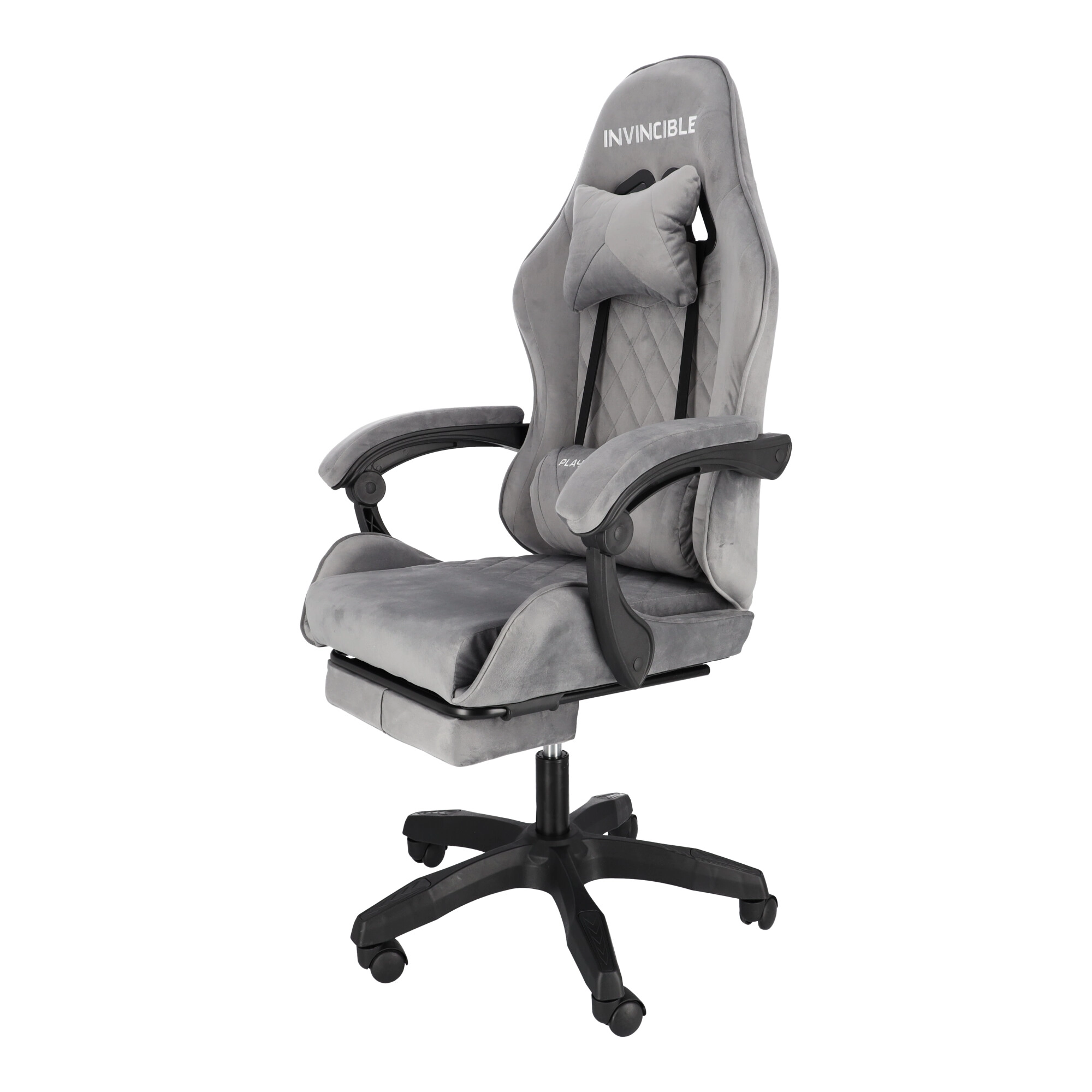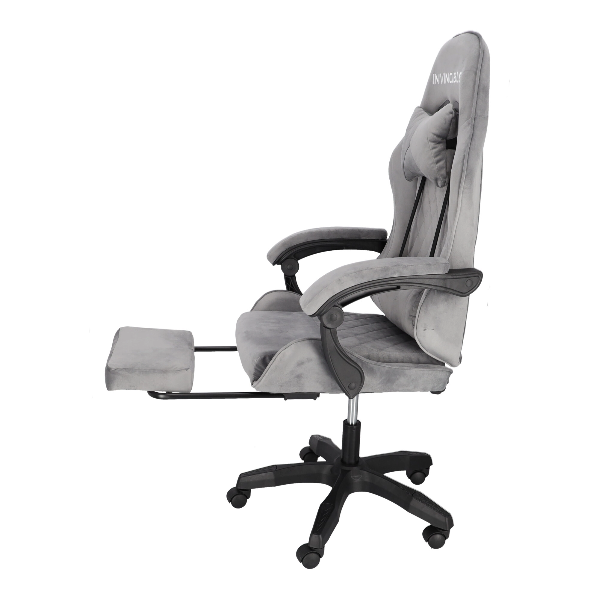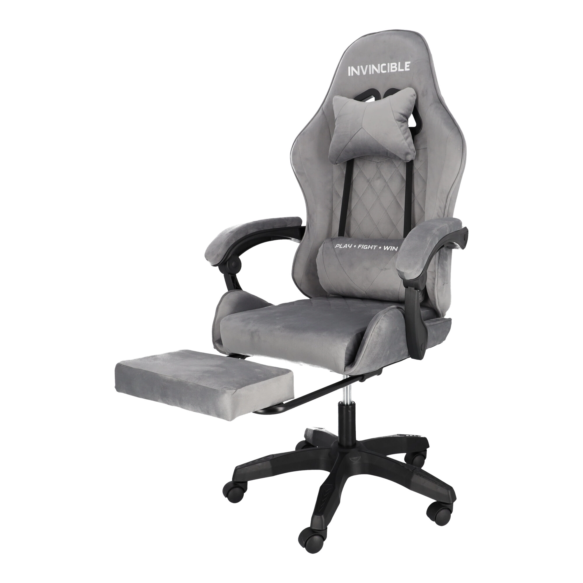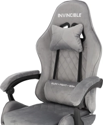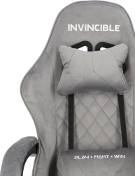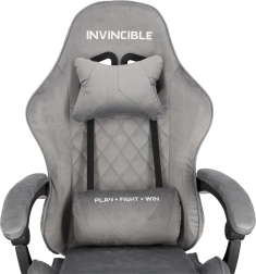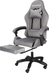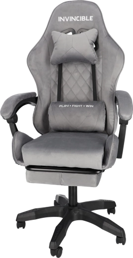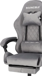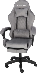 Szürke bársonyos gamer szék lábtartóval INVINCIBLE