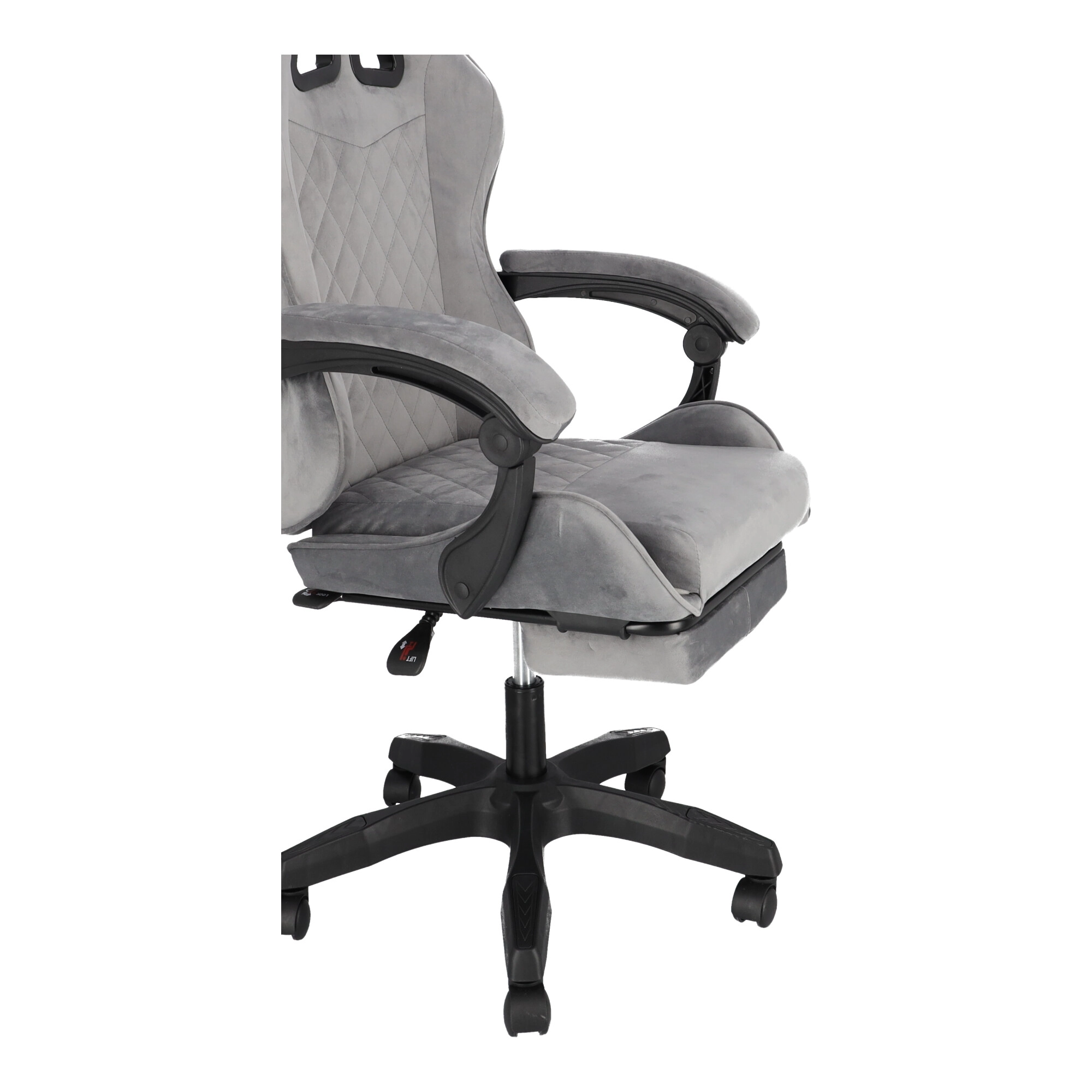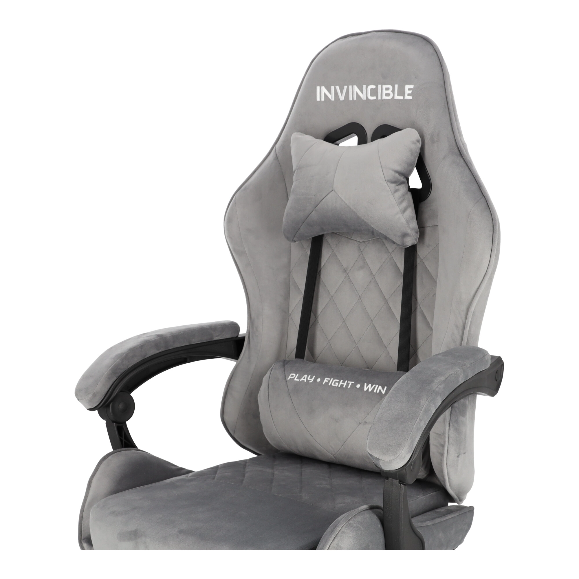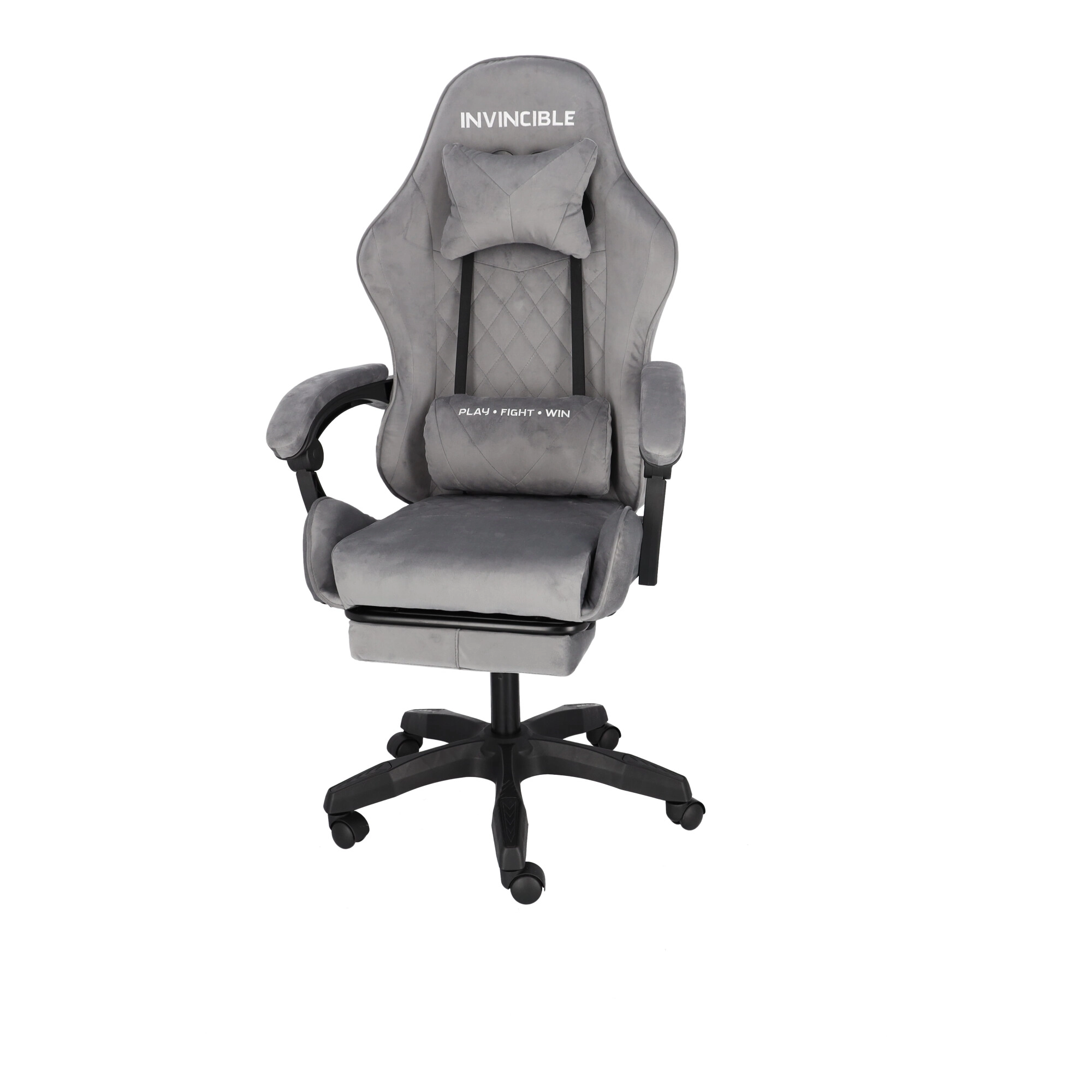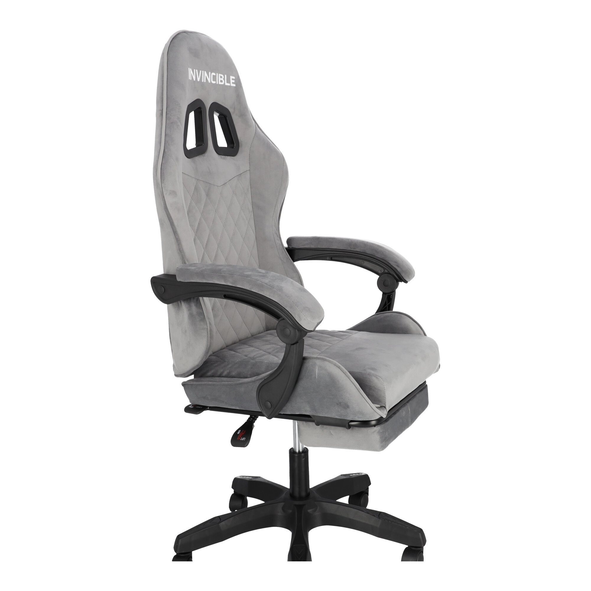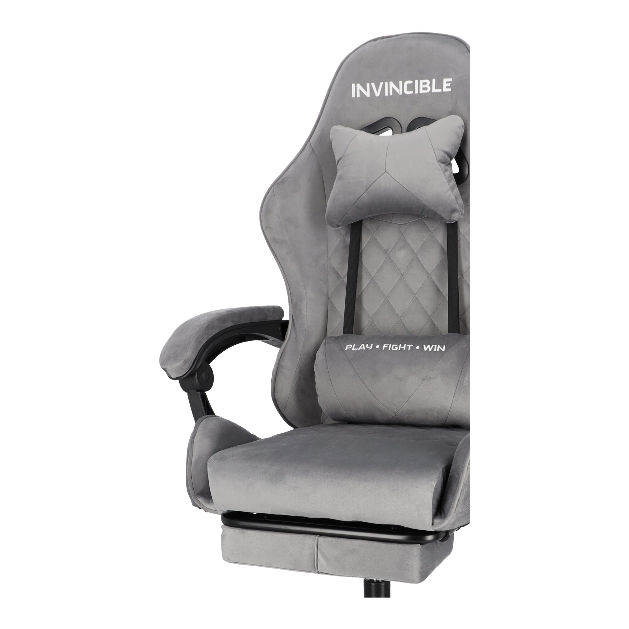 Szürke bársonyos gamer szék lábtartóval INVINCIBLE