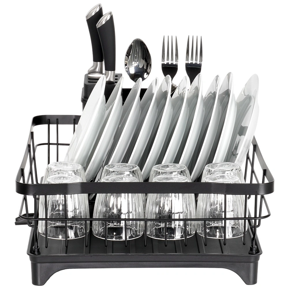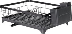 A tartós, fekete fém akár 10 tányért, poharakat és tálakat is befogad. A megemelt peremek stabilitást és a biztonságos tárolást biztosítják.