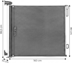 A praktikus, kihúzható ECOTOYS biztonsági kapu biztonságos teret nyújt gyerekeknek és házi kedvenceknek. A feltekerhető rendszernek köszönhetően egy kézzel gyorsan nyitható, akár 160 cm szélességhez igazítható, és összehúzva minimális helyet foglal. A tartós hálós anyag és a alumíniumból és műanyagból készült könnyű szerkezet megkönnyíti a karbantartást és a mindennapi használatot.
