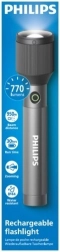 Kompakt PHILIPS akkumulátoros zseblámpa USB‑C töltéssel, 770 lm fényárammal, strapabíró alumíniumházzal és integrált 3000 mAh akkumulátorral a megbízható világításért otthon, a műhelyben és a szabadban.