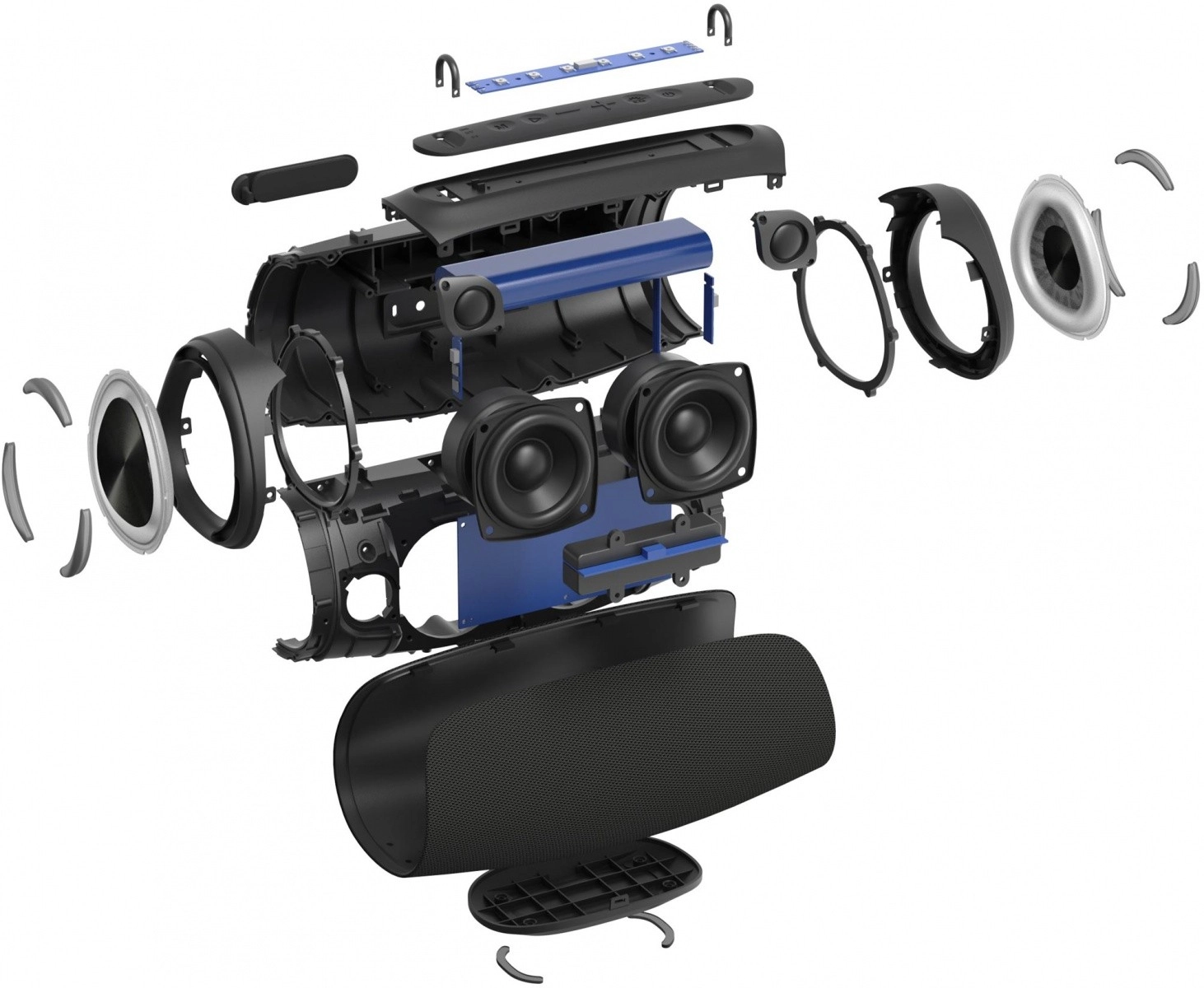 Négy hangszóró és két passzív radiátor biztosítja az erőteljes basszust és a tiszta ének- illetve hangszerhangzást – zenéhez, filmhez és podcastokhoz egyaránt ideális.