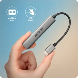 Az AXAGON HUE‑STC egy kompakt USB‑C hub, amely kibővíti a modern, kevés porttal rendelkező eszközök csatlakoztathatóságát. A gyors USB‑A 5 Gbps ideális külső meghajtókhoz és pendrive‑okhoz, a két USB‑A 2.0 (480 Mbps) megbízhatóan kezeli az egeret, billentyűzetet vagy nyomtatót, míg a USB‑C 2.0 (480 Mbps) port telefon és egyéb elektronika csatlakoztatására szolgál. Az alumínium kivitel karcsú, masszív, és segíti a passzív hűtést.