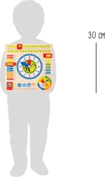 3 éves kortól ajánlott, fából készült, mérete 30 x 30 x 2 cm. Ez a naptár nemcsak oktató jellegű, hanem szórakozást és kihívást is nyújt, ami segít a gyerekeket lekötni és kíváncsivá tenni.