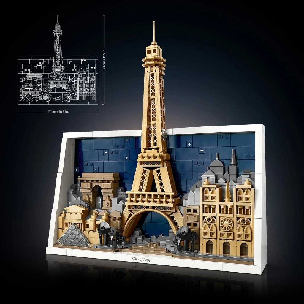 Az építés intuitív és megnyugtató. A LEGO Builder alkalmazásban a modellt nagyíthatja, 3D-ben forgathatja és lépésről lépésre követheti. A készlet ideális a dizájn és a történelem rajongóinak, a „City of Love” feliratú dísztáblának köszönhetően pedig egyedi hangsúlyt ad gyűjteményének.
