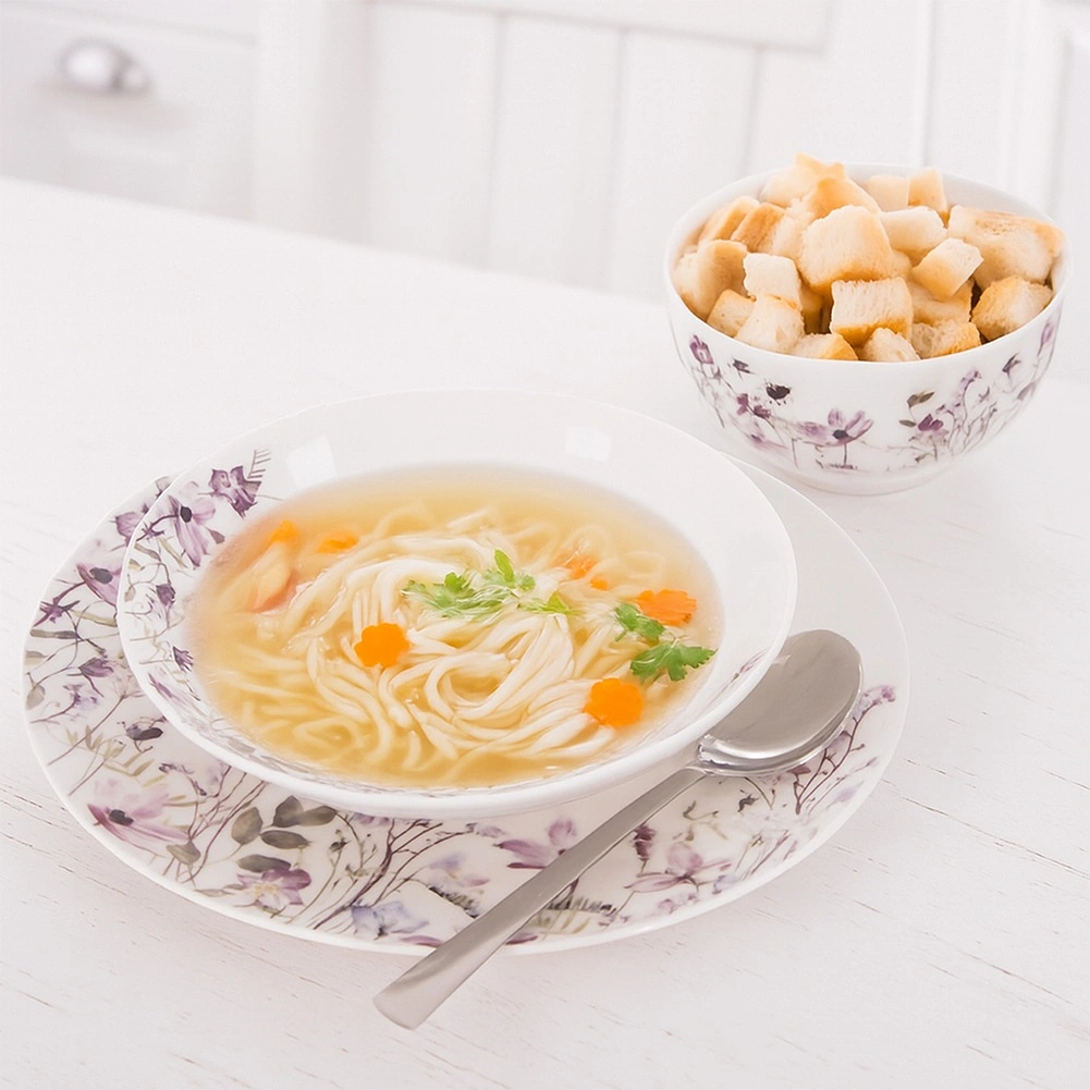 Megfelelő mélységének és 600 ml űrtartalmának köszönhetően kényelmesen tálalhat benne leveseket, krémeket, tésztákat vagy müzlit. A minőségi porcelán tartós és könnyen karbantartható – a tányér mosogatógépben mosható és mikrohullámú sütőben melegíthető. A klasszikus kerek forma és a virágminta könnyen kombinálható más darabokkal is.