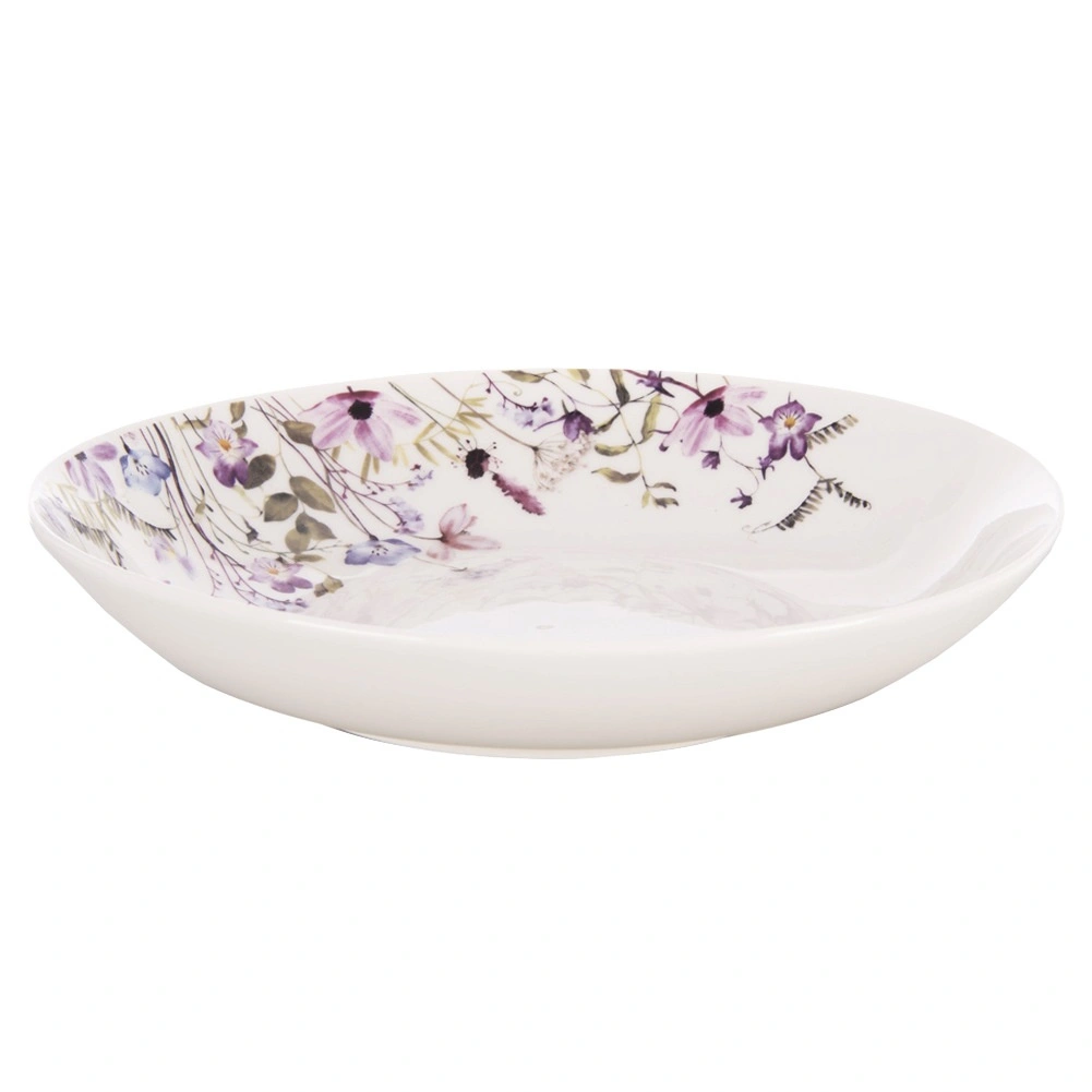 Elegáns, mély porcelántányér réti virágmintás dekorral, ideális a mindennapi étkezésekhez és ünnepi alkalmakra is. A 20,5 cm átmérőnek és 600 ml űrtartalomnak köszönhetően tökéletes levesekhez, tésztákhoz és salátákhoz. A porcelán hosszú élettartamot biztosít, a tányér mosogatógépben és mikrohullámú sütőben használható, és elegáns kialakításával bármelyik asztalt díszíti.