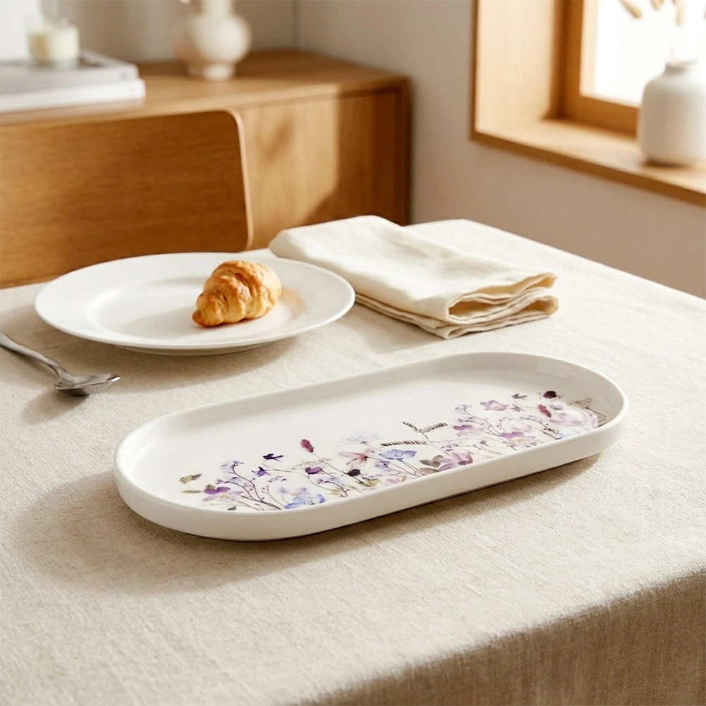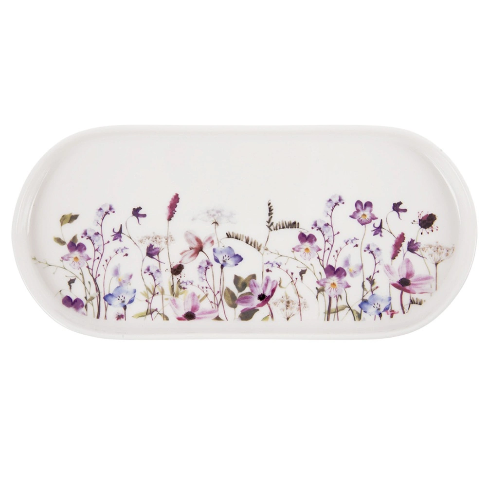 Elegáns, ovális porcelán tál réti virágmintával, ideális előételek, desszertek vagy falatkák tálalásához. A 25 × 12 cm-es méretnek és az enyhén megemelt peremnek köszönhetően stílusos és egyben praktikus. Mosogatógépben és mikrohullámú sütőben használható, minőségi porcelán és modern virágos dizájn – remek választás a hétköznapokra és az ünnepi asztalra is.