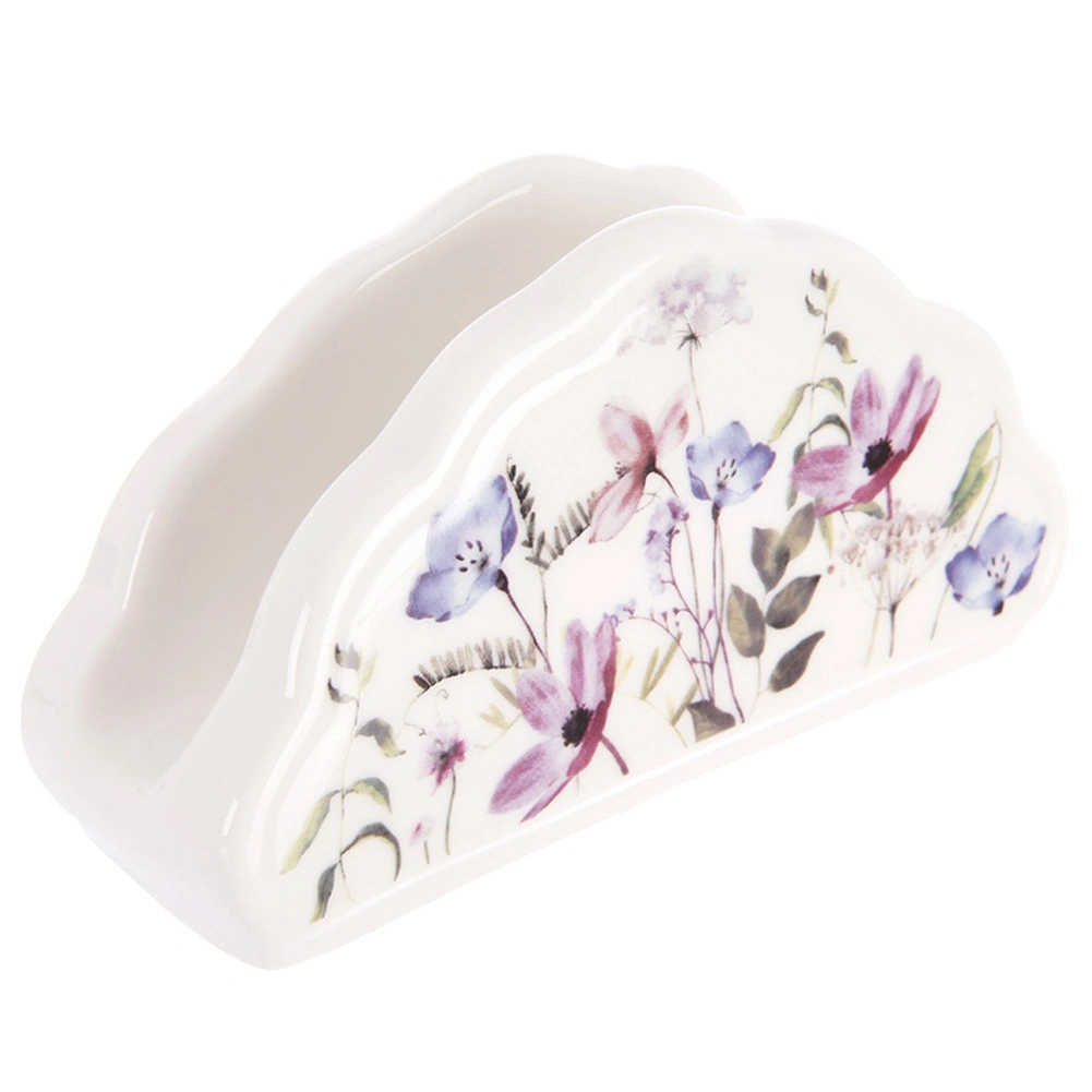Fedezze fel az asztalterítést stílusosan kiegészítő, praktikus darabot. A LOUKA porcelán szalvétatartó fehér mázzal és finom mezei virágmintával friss, elegáns megjelenést ad az asztalnak. Stabil kialakításának köszönhetően a szalvéták függőlegesen és kéznél maradnak, legyen szó családi ebédről, kerti grillezésről vagy vendégfogadásról.