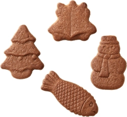 Egyszerre akár 20 darabot készíthet fenyőfa, hóember, harang és hal motívumokkal – ideális ünnepi vendégváráshoz.