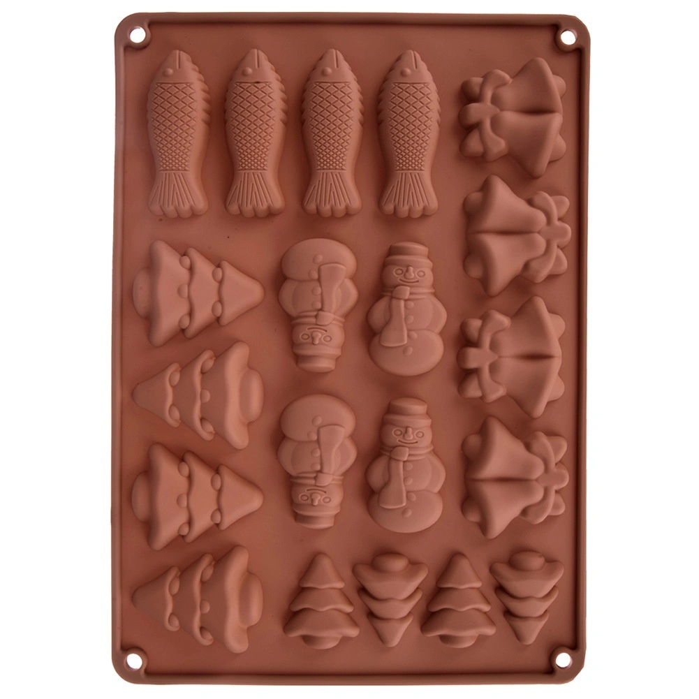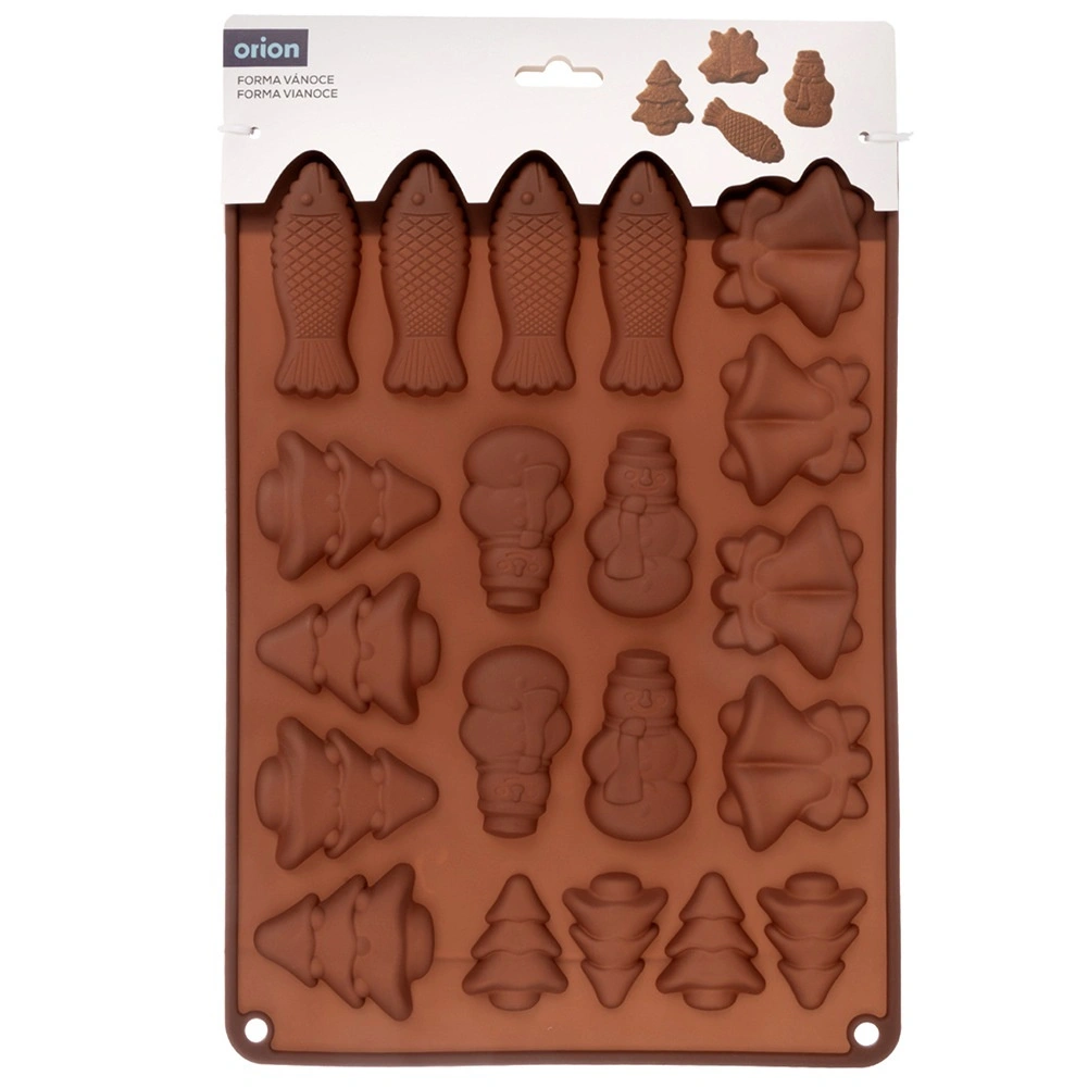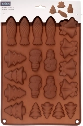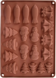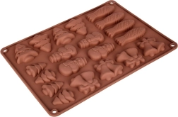 Praktikus szilikon forma a csokoládé öntéséhez és a sütéshez téli motívumokkal. A 20 üregnek köszönhetően egyszerre készíthet édességeket öt formában – fenyőfa, hóember, harang és hal. Az anyag tapadásmentes, rugalmas és -40 – +200 °C hőállóságú, alkalmas sütőbe, mikróba és fagyasztóba, valamint mosogatógépben mosható.