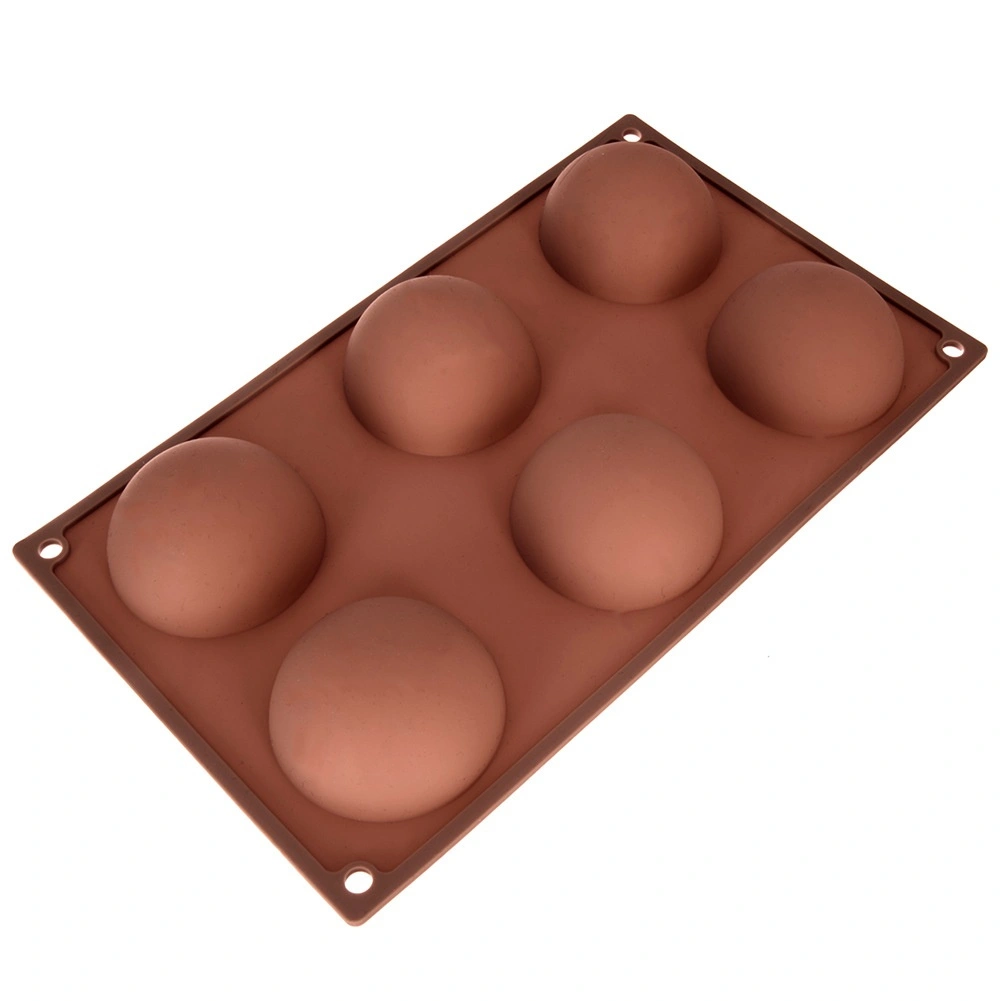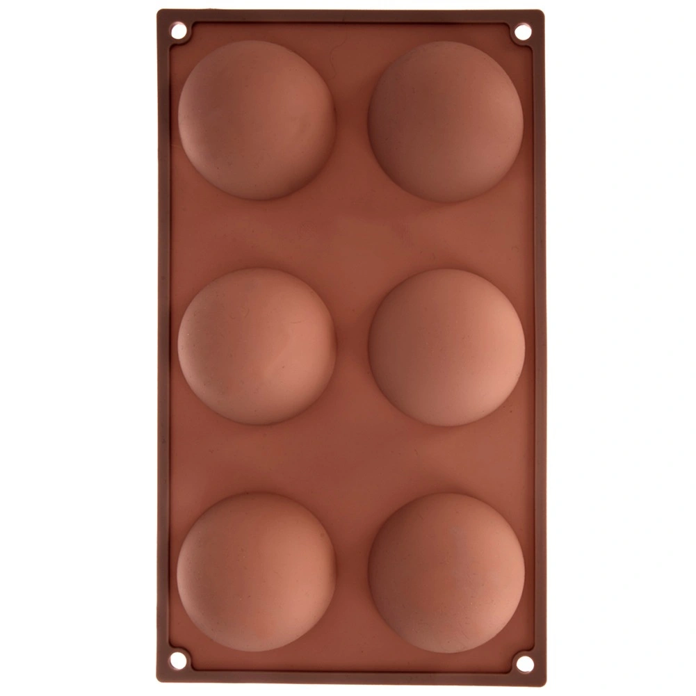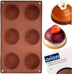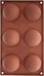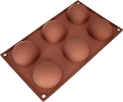 Ez a barna szilikon forma hat félgömb alakú üreggel ideális hideg desszertekhez és sült alapokhoz egyaránt. A tapadásmentes felületnek köszönhetően a desszertek könnyen kivehetők a forma sérülése nélkül, és a forma nem veszi át a szagokat és ízeket.