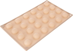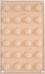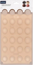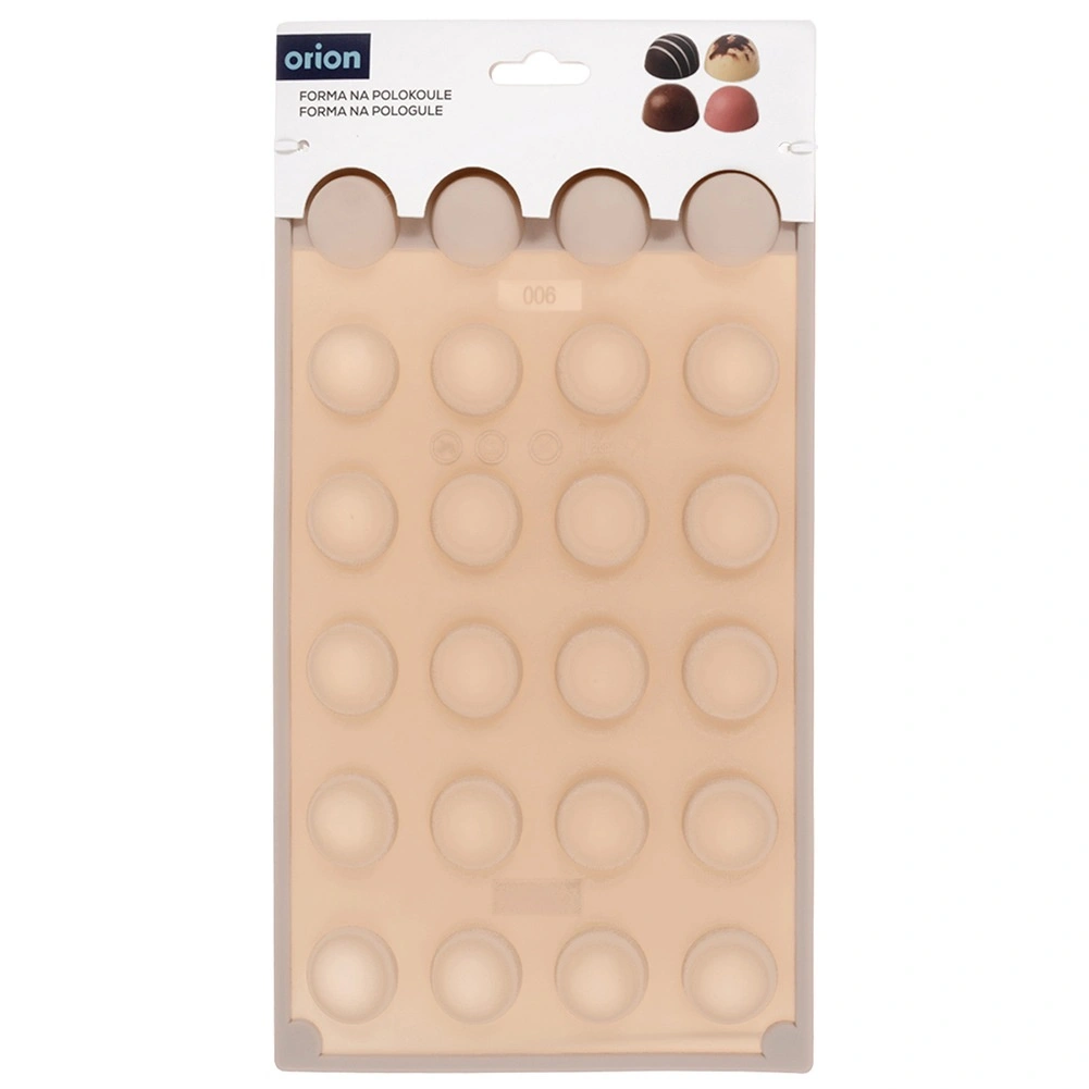 Ez a bézs szilikon forma lehetővé teszi, hogy könnyedén és gyorsan professzionális megjelenésű pralinékat, bonbonokat és mini tortácskákat készítsen félgömb alakban. A tapadásmentes felületnek köszönhetően a kész darabok könnyen kifordíthatók letapadás nélkül, és a forma nem veszi át a szagokat vagy ízeket.