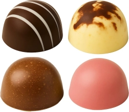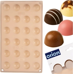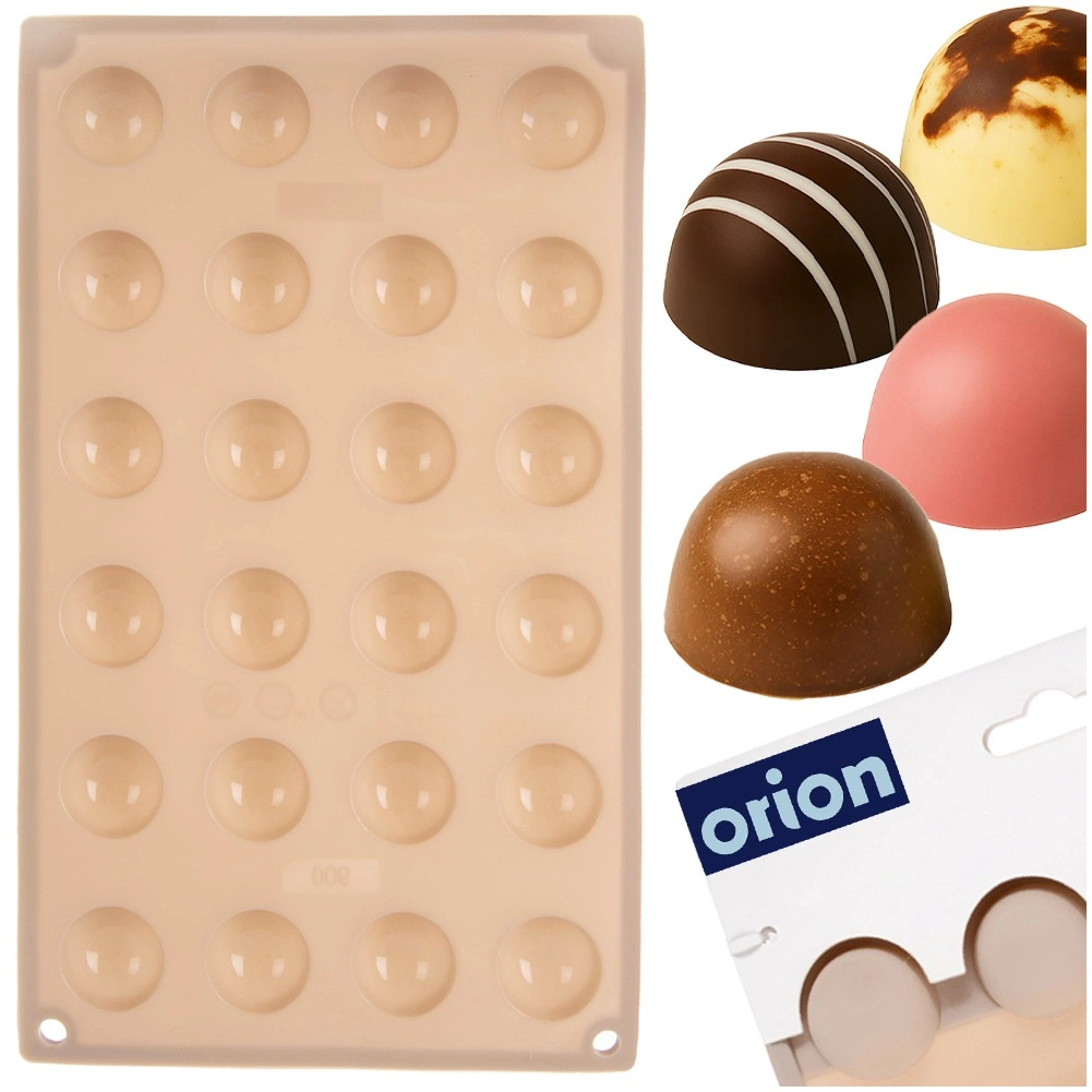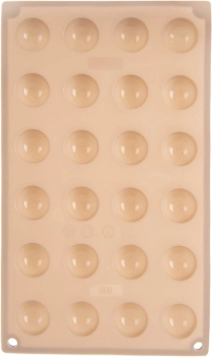A 24 félgömb alakú üreg rácselrendezése egységes formát és méretet biztosít minden darabnak – elegáns pralinékhoz és modern desszertekhez ideális.