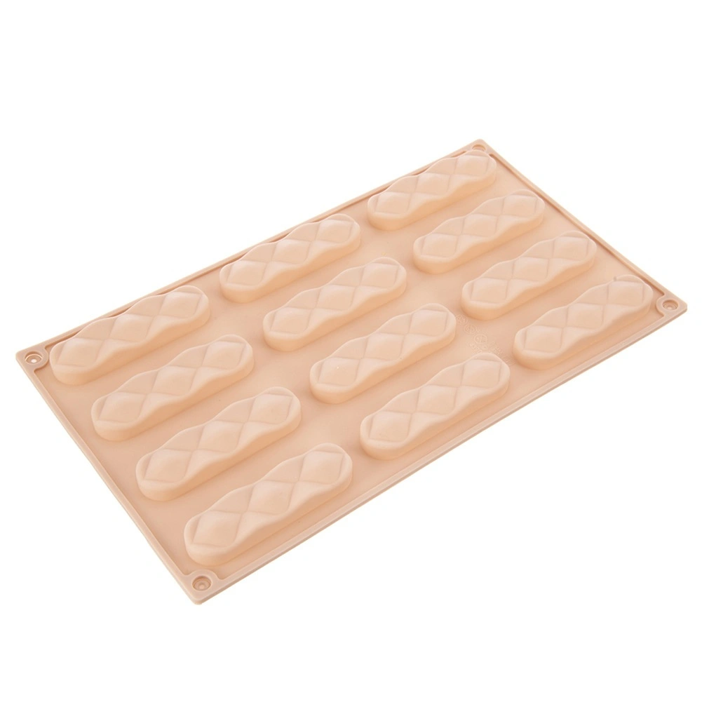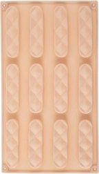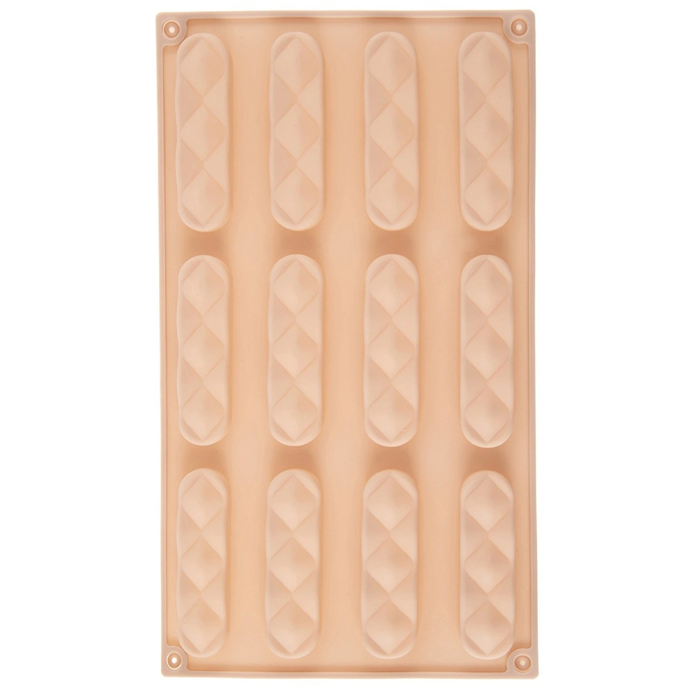 A forma tizenkét hosszanti mélyedést tartalmaz, amelyek segítenek egyenletes kekszek vagy egységes méretű rudak elkészítésében.