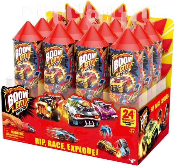 A BOOM CITY RACERS minden csomagban akciót, sebességet és meglepetést hoz. Csak húzd meg a gyűrűt, indítsd a rakétát, és nézd, ahogy a szupergyors autó előre száguld. Ütközéskor a jármű mókásan “szétesik”, így adva a játéknak egyedülálló robbanásos effektet, amit a gyerekek imádni fognak.
